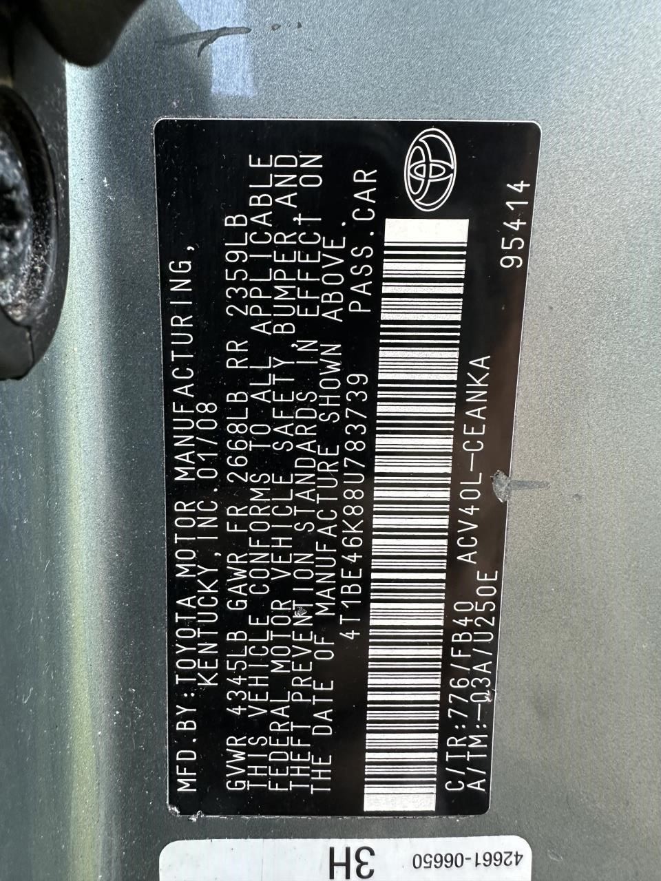 CAMRY 07-09 VIN E (5th digit), (2.4L, 4 cylinder, 2AZFE engine), North America built