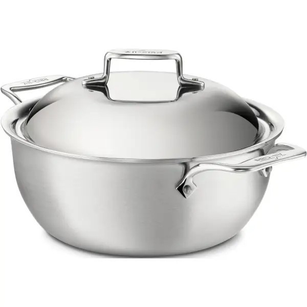 Exceptionally Even Heat - D5 is fully bonded to the rim, the unique five-ply construction is patented and delivers the ultimate even heating and warp resistance. High quality 18/10 stainless steel surface sears to perfection and is ideal for deglazing.