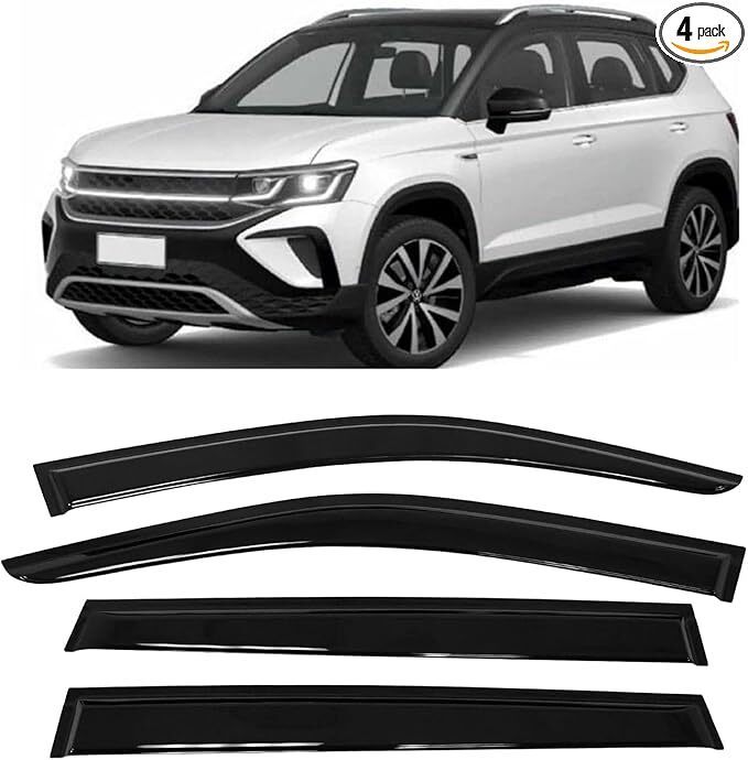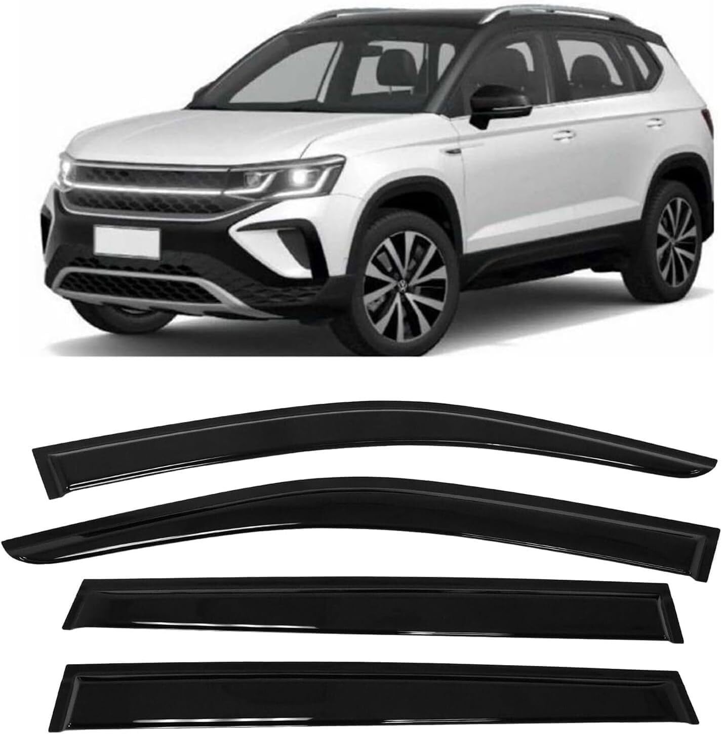 Compatible with Volkswagen Taos 2021 2022 2023 2024. Package Content: 4 pcs Window visors. High quality acrylic PC Full-size Side Window Deflectors ? This 4-piece set includes passenger and driver side rain guards that create a seamless look that protects you from sun rays, rain drops, and wind while you?re driving with the window down. Made of PMMA and Manufactured With Injection Moulding Process That Ensures Heavy Duty Strength Smooth Look Warranty: 1 year Limited Warranty. Long lasting material designed to withstand the rigors of the elements.