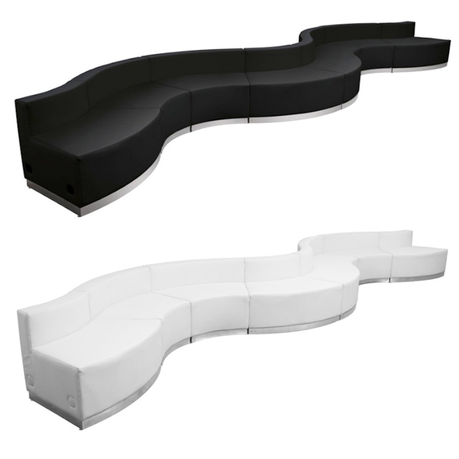 BLACK OR WHITE LEATHERSOFT* 8-PIECE LARGE CONCAVE/CONVEX RECEPTION SECTIONAL. GREAT FOR OFFICE SPACE, HOTEL LOBBIES, CONFERENCE HALLS, SHOPPING MALLS OR EVEN YOUR LIVING ROOM.