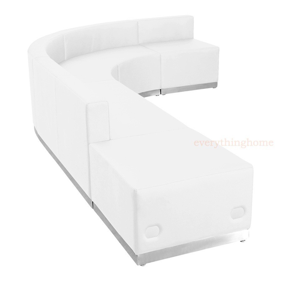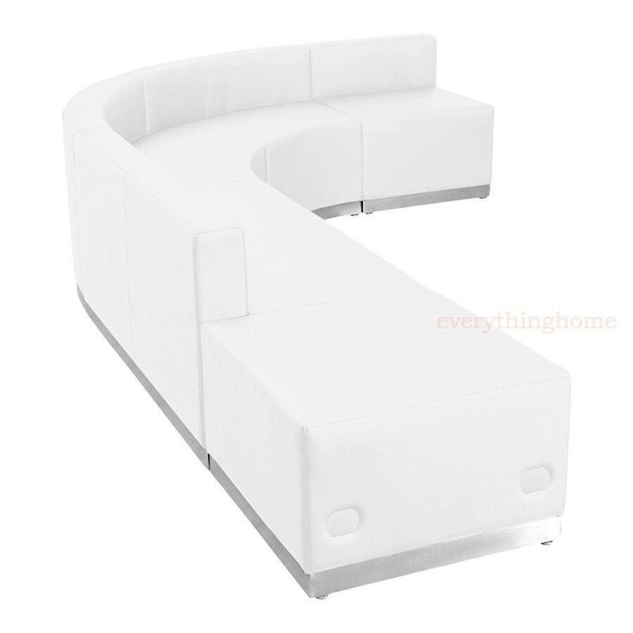 BUILT TOUGH ENOUGH TO BE USED IN ANY COMMERCIAL OR RESIDENTIAL APPLICATION, YOU ARE GETTING ONE BLACK OR WHITE LEATHERSOFT* 5-PIECE ARMLESS L-SECTIONAL FOR USE IN OFFICE SETTINGS, RECEPTION AREAS, LOUNGES, RESTAURANTS, HOTEL LOBBIES, CONFERENCE CENTER SPACES, AIRPORT PASSENGER LOUNGE AREAS, SHOPPING MALL COURTS OR EVEN IN YOUR OWN LIVING ROOM, FAMILY ROOM OR HOME THEATER OR MEDIA ROOM. PLEASE SCROLL ALL THE WAY DOWN TO VIEW ADDITIONAL PHOTOS AND DETAILS.
