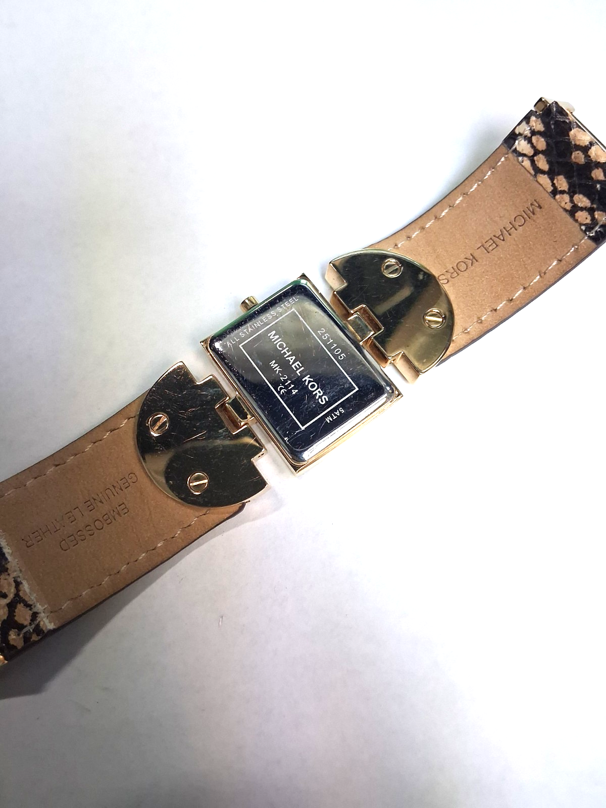 Michael Kors Womens Brown Leather Gold Steel Square Watch MK2114