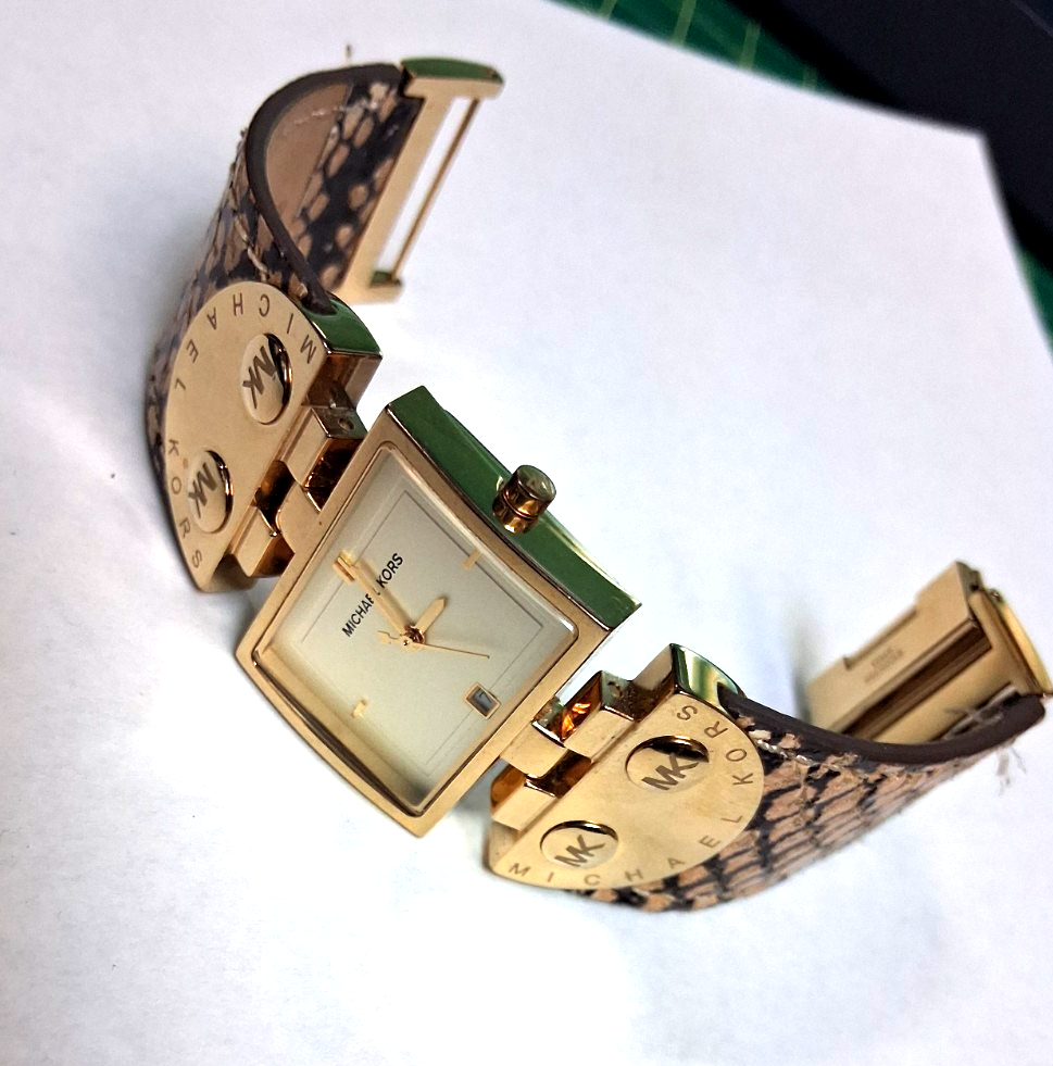 Michael Kors Womens Brown Leather Gold Steel and similar items