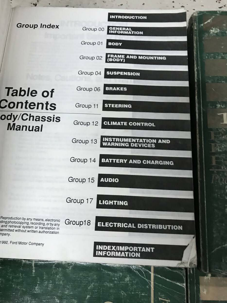 1993 Ford F-150, F-250.350.450.550, manuale di servizio del corpo/telaio F-super, manuale di servizio elettrico, manuale di cablaggio elettrico e manuale di servizio diesel 7.3