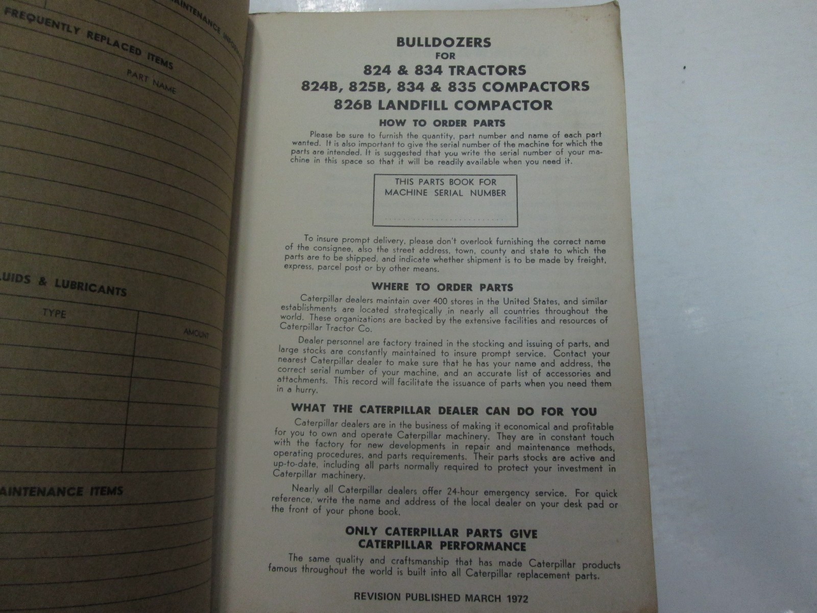 Caterpillar 824 834 Tractors 824B 825B Compactors Bulldozers Parts Book Manual