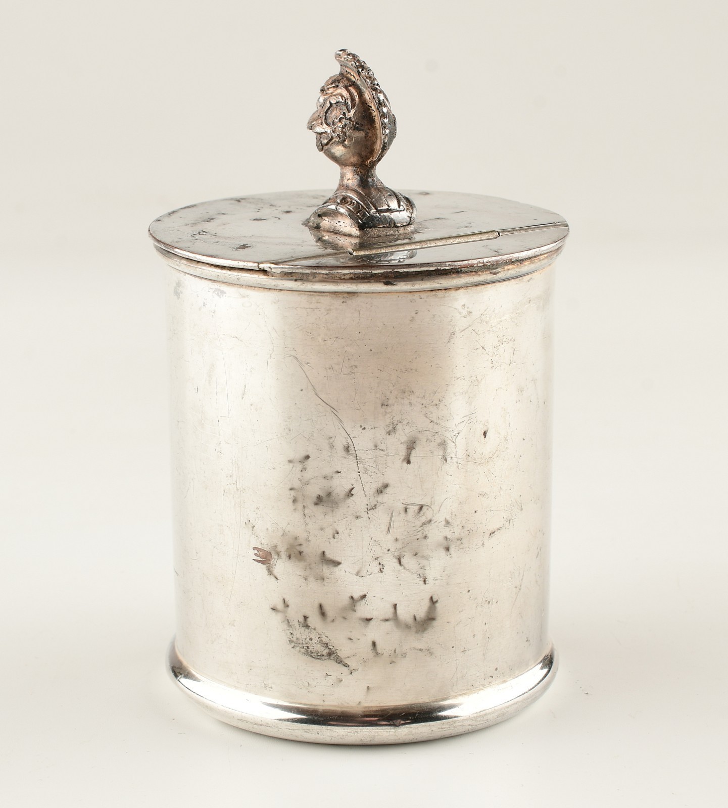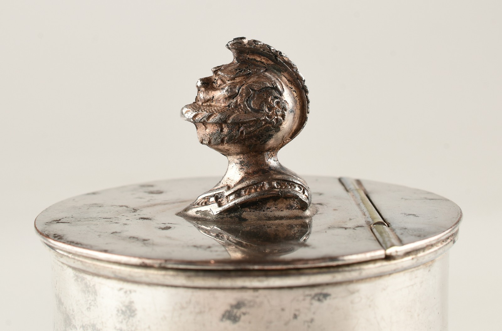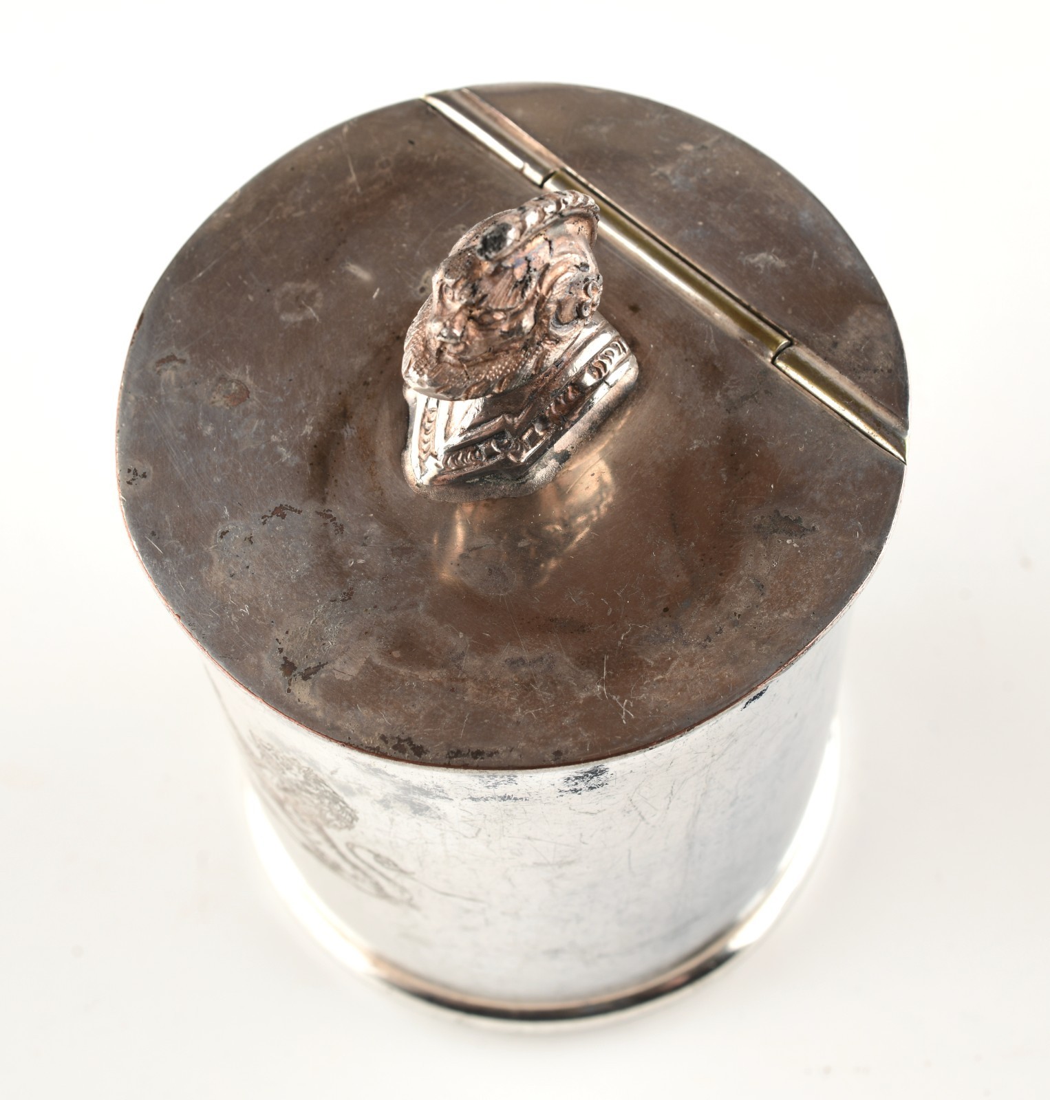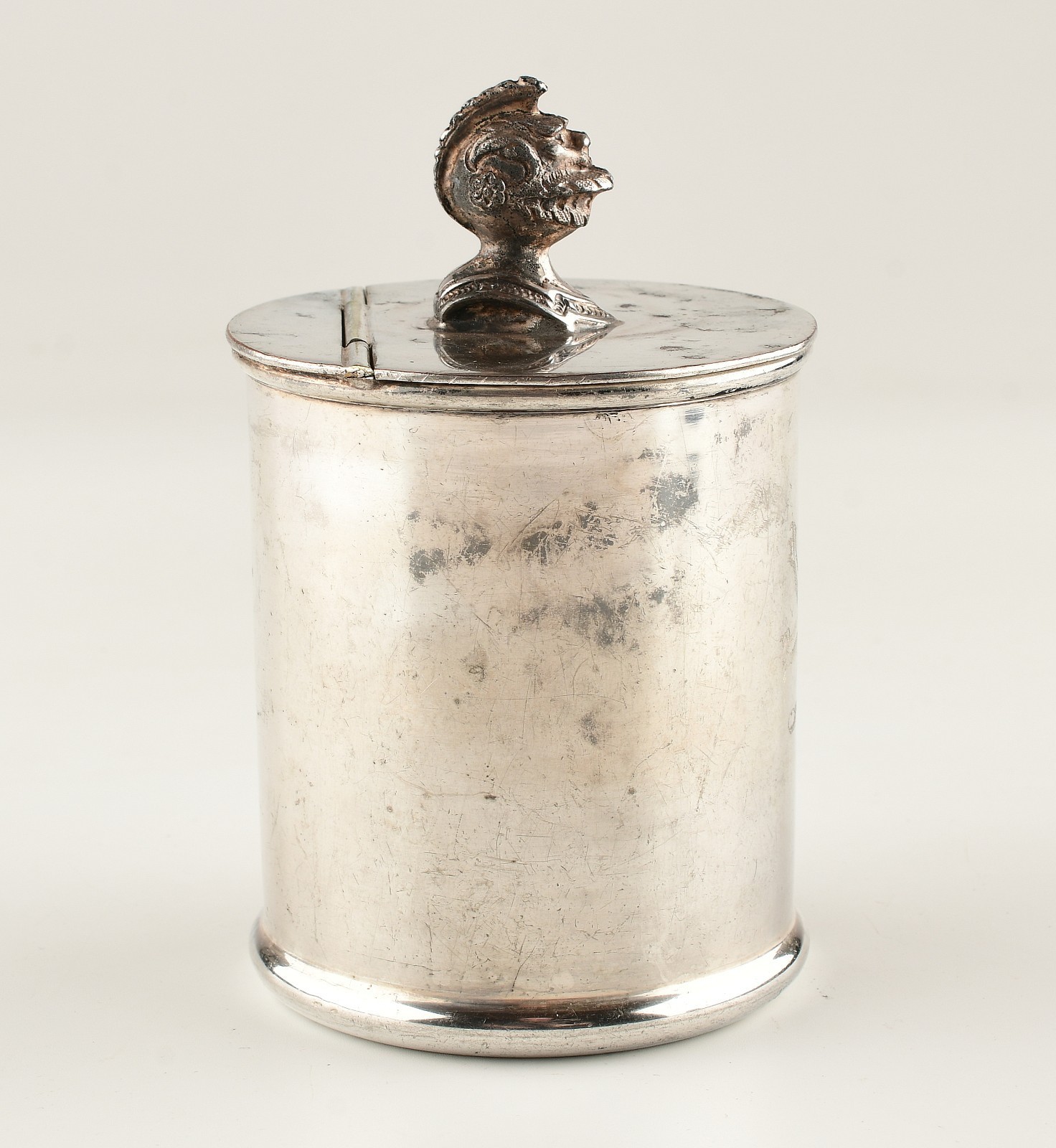 *Tea Caddy Canister with Helmet on Top Silver Plated Made in Sheffield England