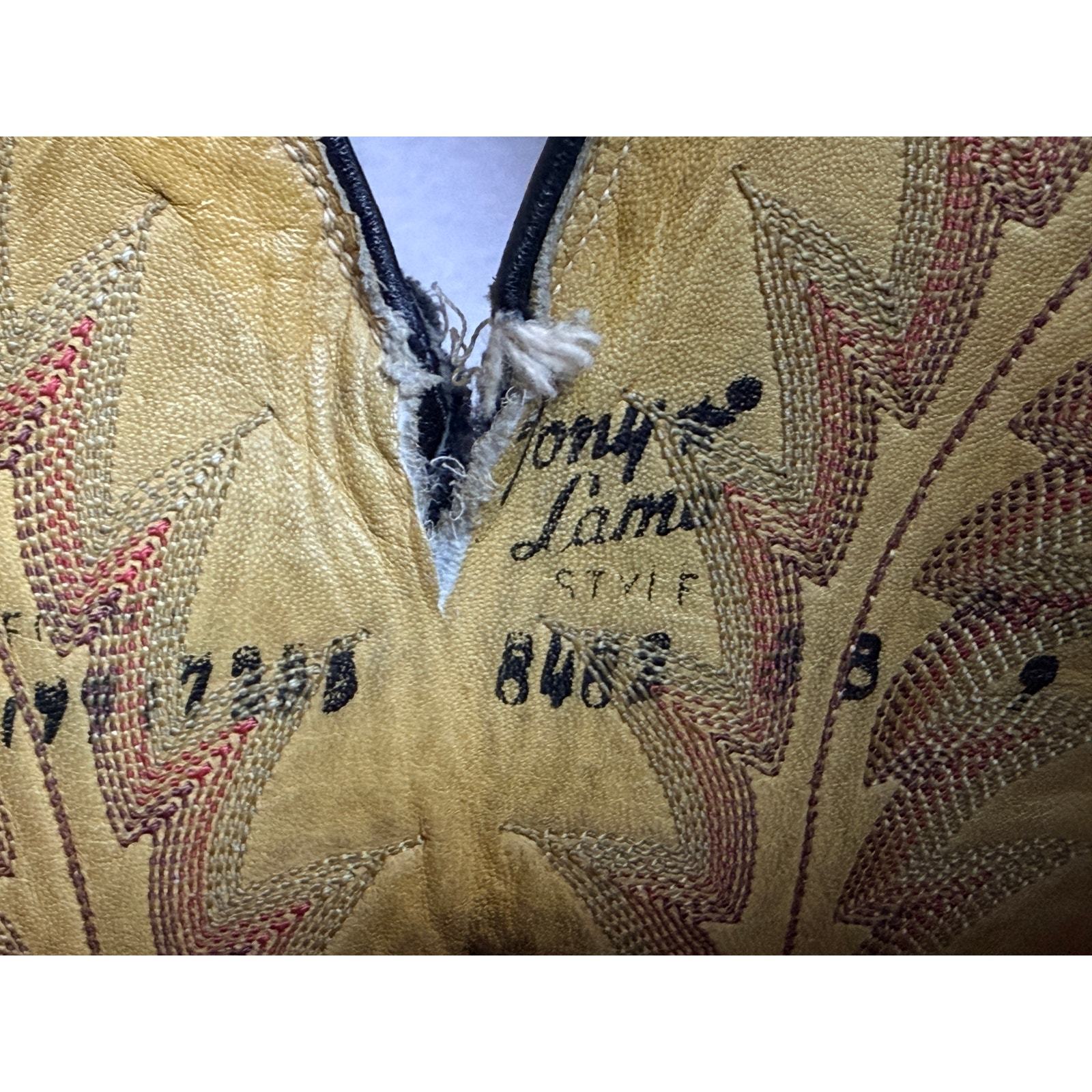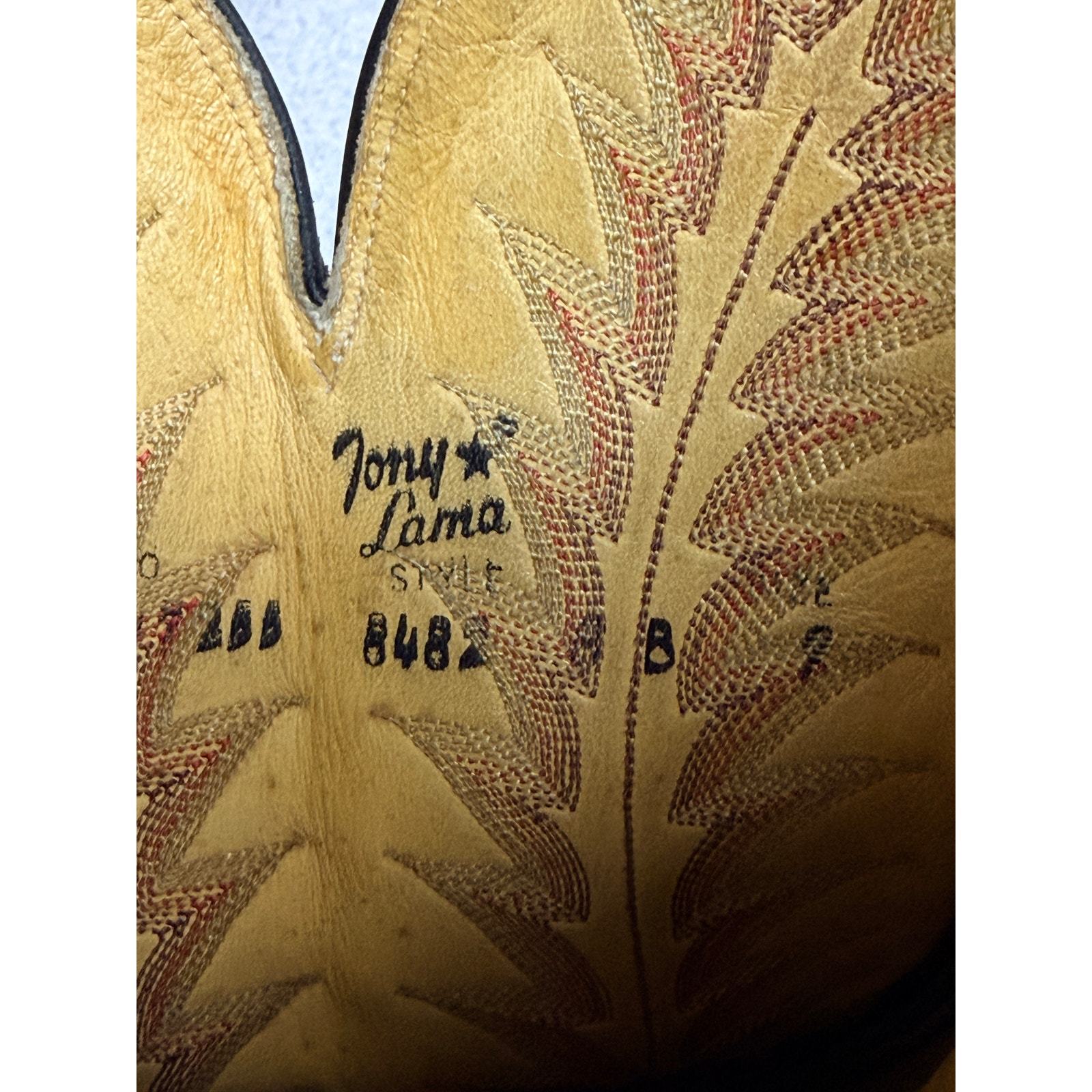 Made by Tony Lama Boot Co., founded in 1911 in El Paso, Texas ? one of the most respected Western bootmakers in America. This pair (style 8482) was handcrafted in the late 1970s to early 1980s, during the height of Tony Lama?s exotic-leather era. Each boot was bench-made, pegged leather sole, full leather lining, and multi-row flame stitching ? hallmarks of Lama?s artisan quality.