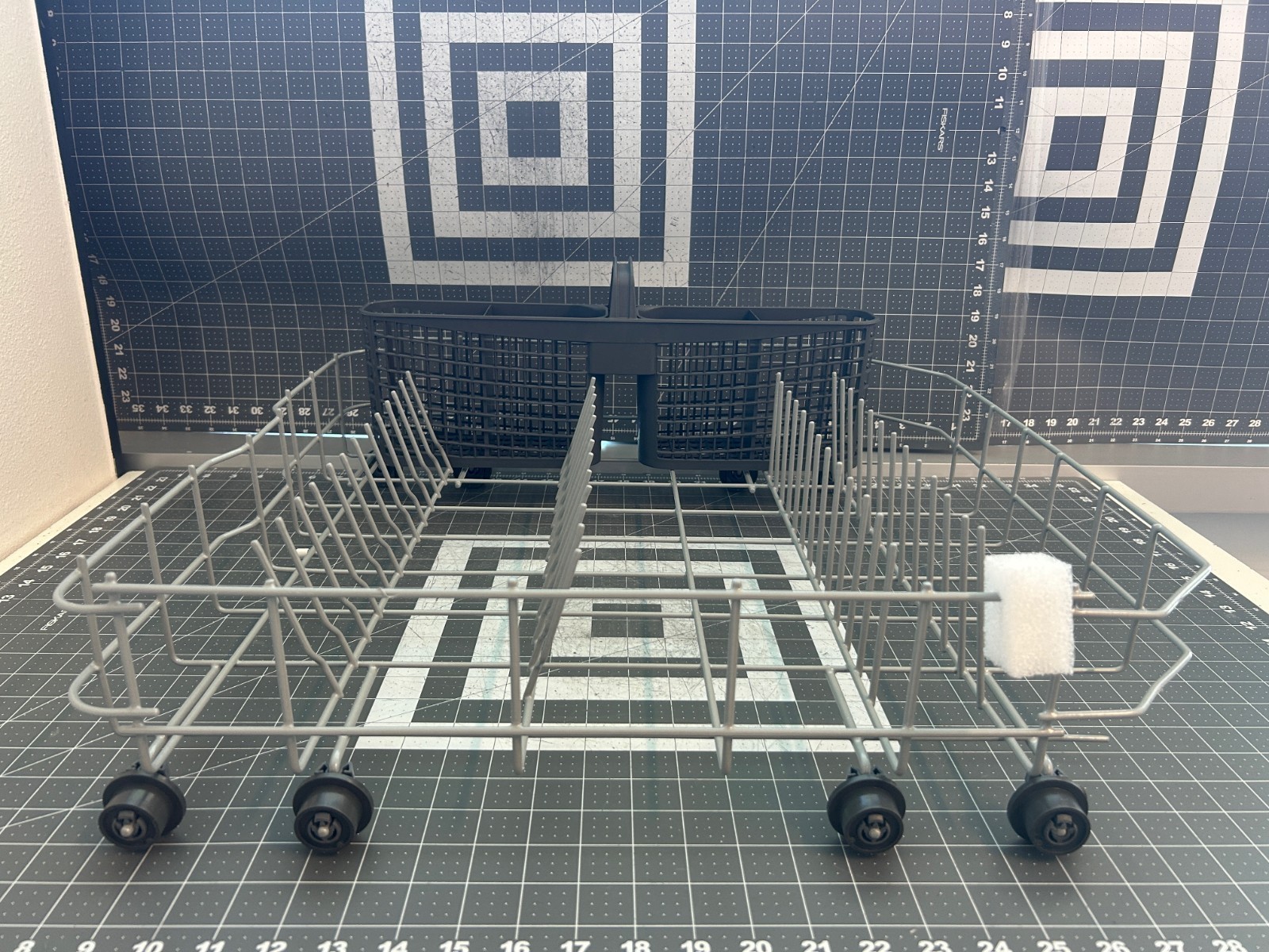 This bottom dishwasher rack seems to be a higher quality than the original that came with my GE Monogram dishwasher! It works great and actually even looks a little better (slightly darker grey).