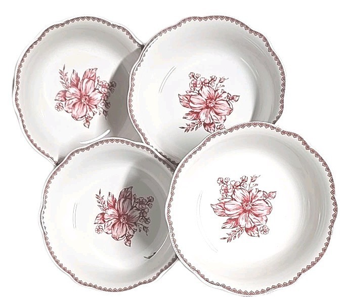 Four (4) Pioneer Woman ~ AGATHA RED ~ Scalloped Edge ~ 7" Stoneware Bowls
