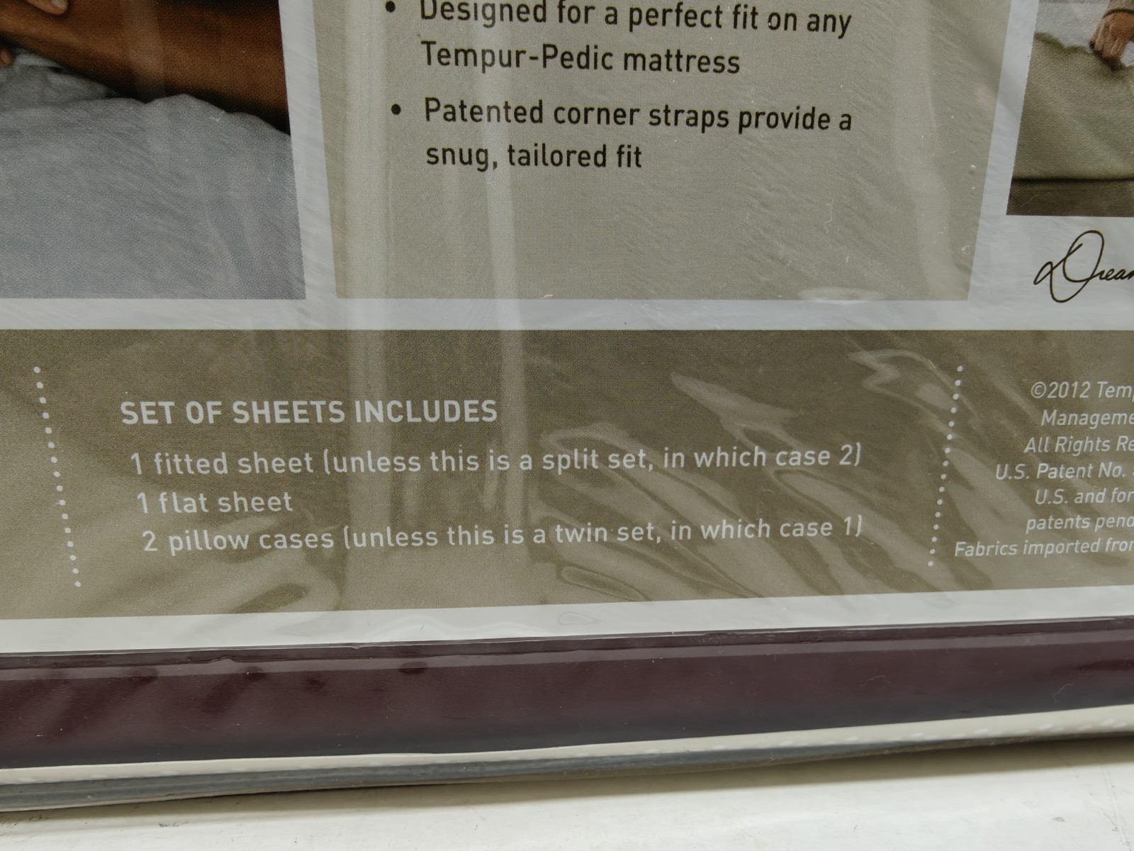 The Tempur-Pedic Dream Fit Sheet Set in Split California King size is designed to provide a comfortable and snug fit for a perfect night's sleep. Made by the trusted brand Tempur-Pedic, this sheet set is specifically tailored for a split California king bed, ensuring a great sleep experience for both partners. Ideal for use in a bedroom, these sheets are brand new and ready to add a touch of luxury to your bed.