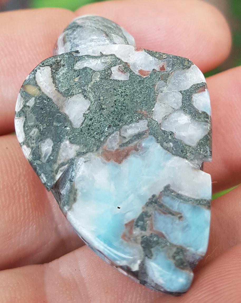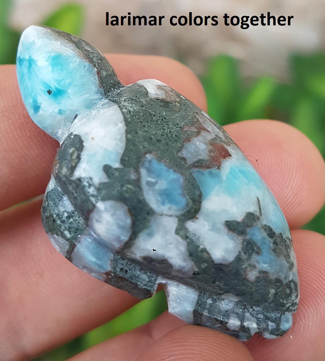 Larimar is a rare variety of pectolite,only found in Dominican Republic. Its specified coloration in a range containing white, light blue,brown, greenish blue and deep blue.
