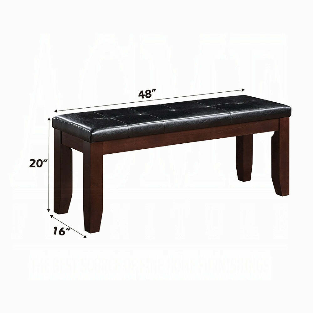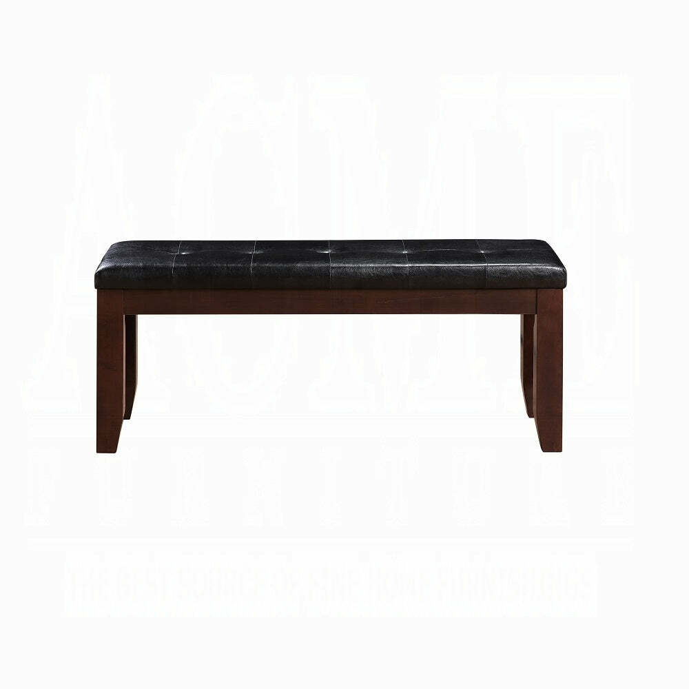 Cherry Finish Dining Bench - Upholstered Tufted PU Seat