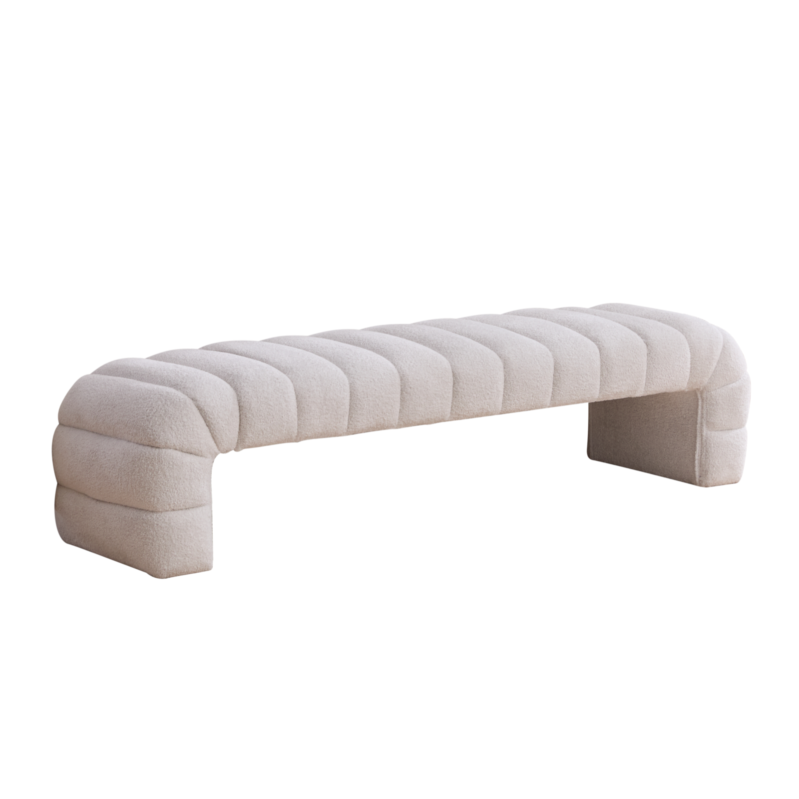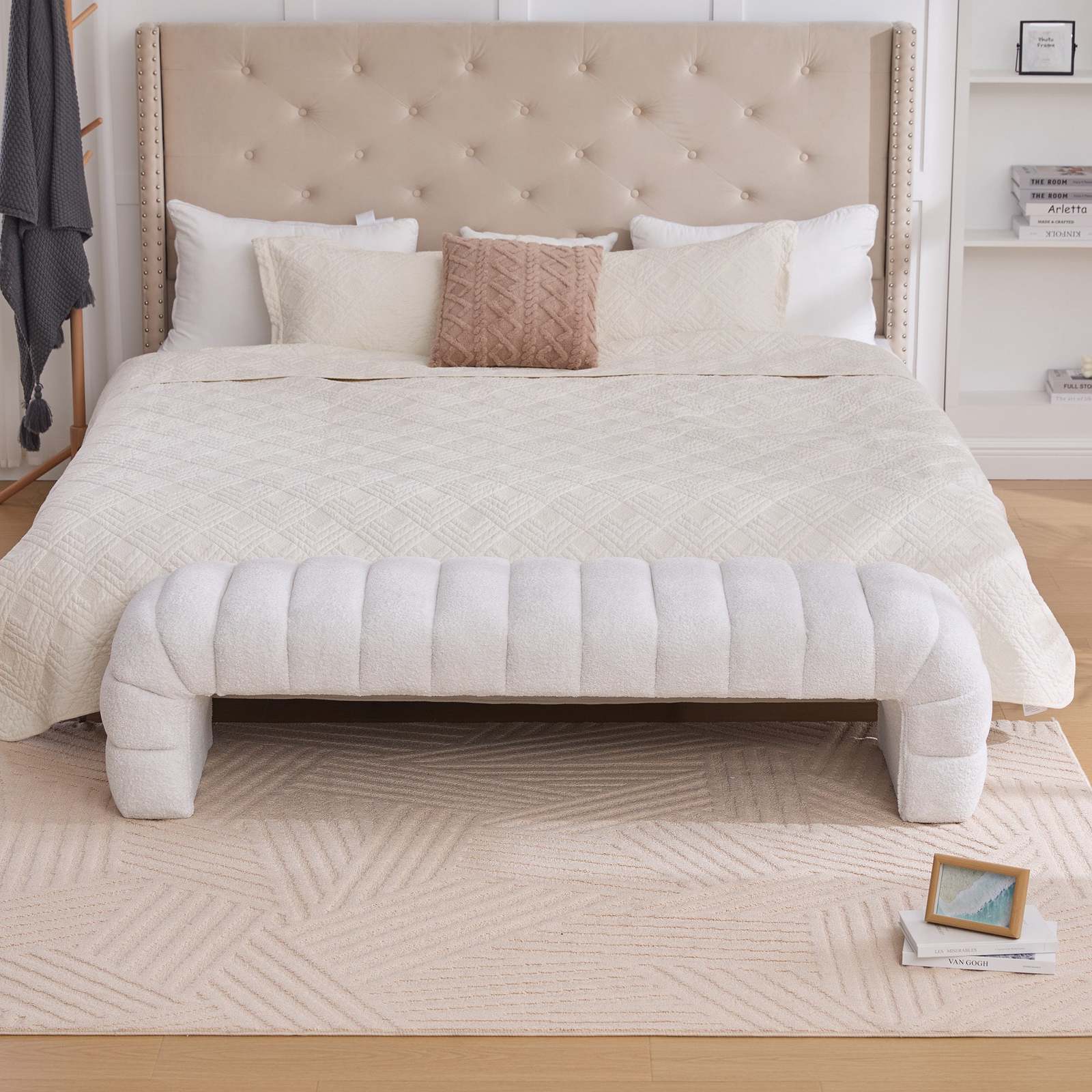 Modern Upholstered Armless Bed Bench - Ivory Chenille Couch Daybed (69.7")