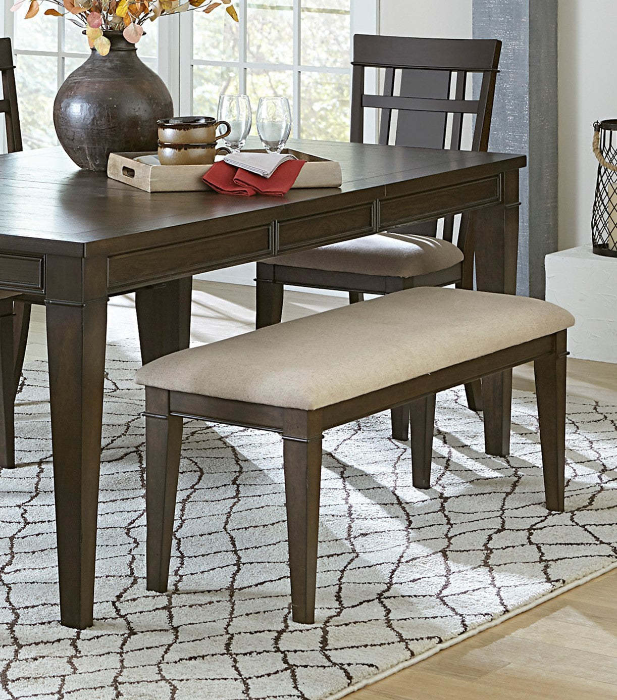 48" Dark Brown Dining Bench - Beige Upholstered, Classic Wooden