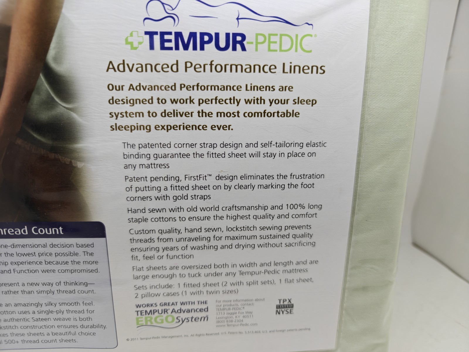 Tempur-Pedic Dream Fit Sheet Set Split Queen New Green Pima Cotton 310 Count