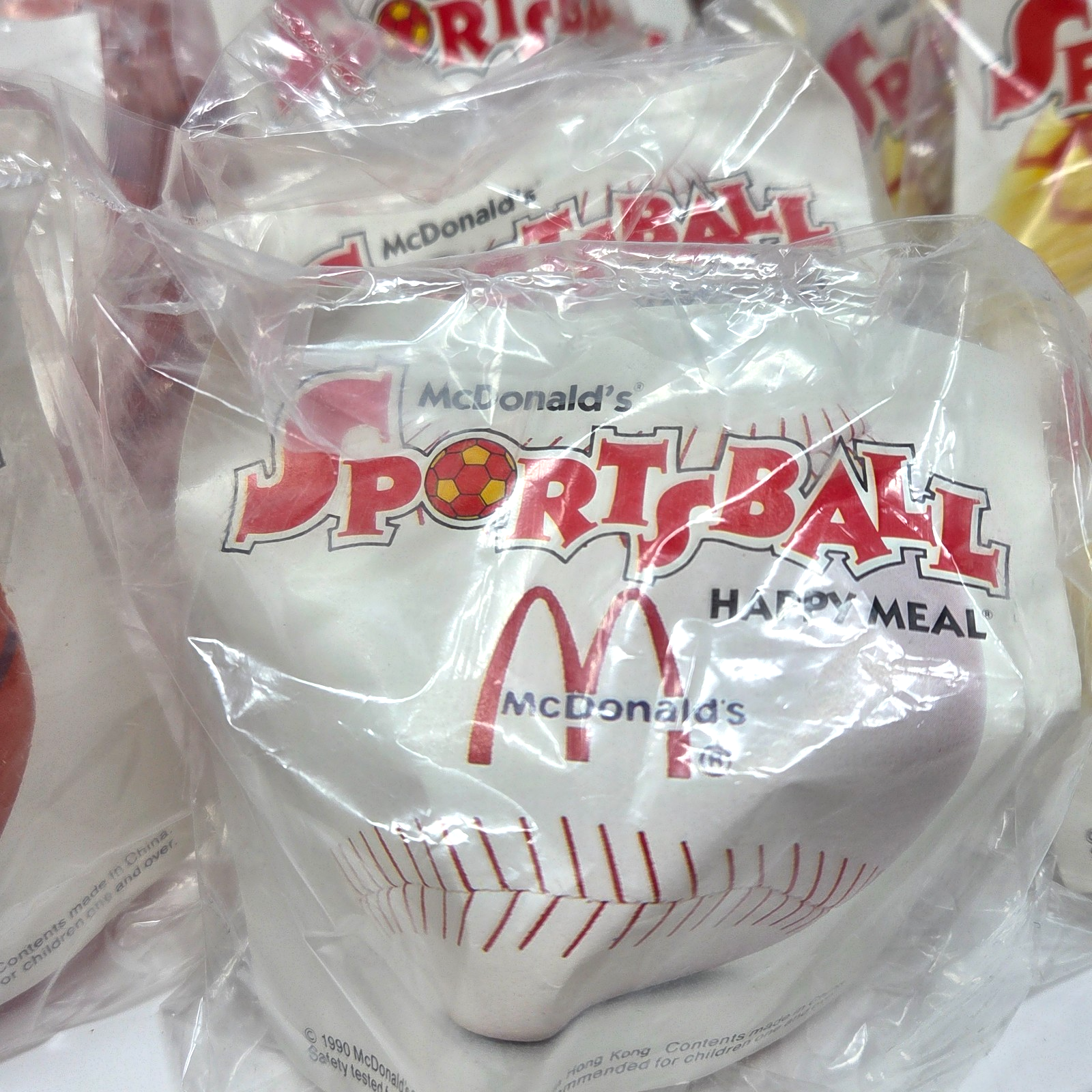 VINTAGE 1990 McDONALDS HAPPY MEAL TOY LOT OF 18 SPORTSBALL NEW BASEBALL FOOTBALL