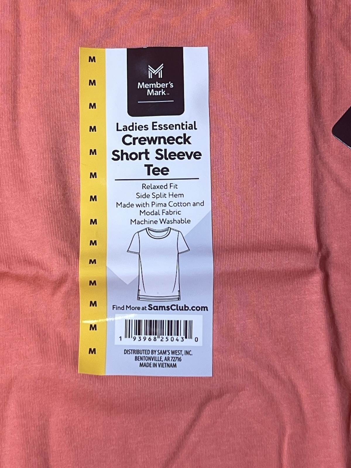Members Mark Ladies Essential Crewneck SS Tee Size M - Peach Pucker