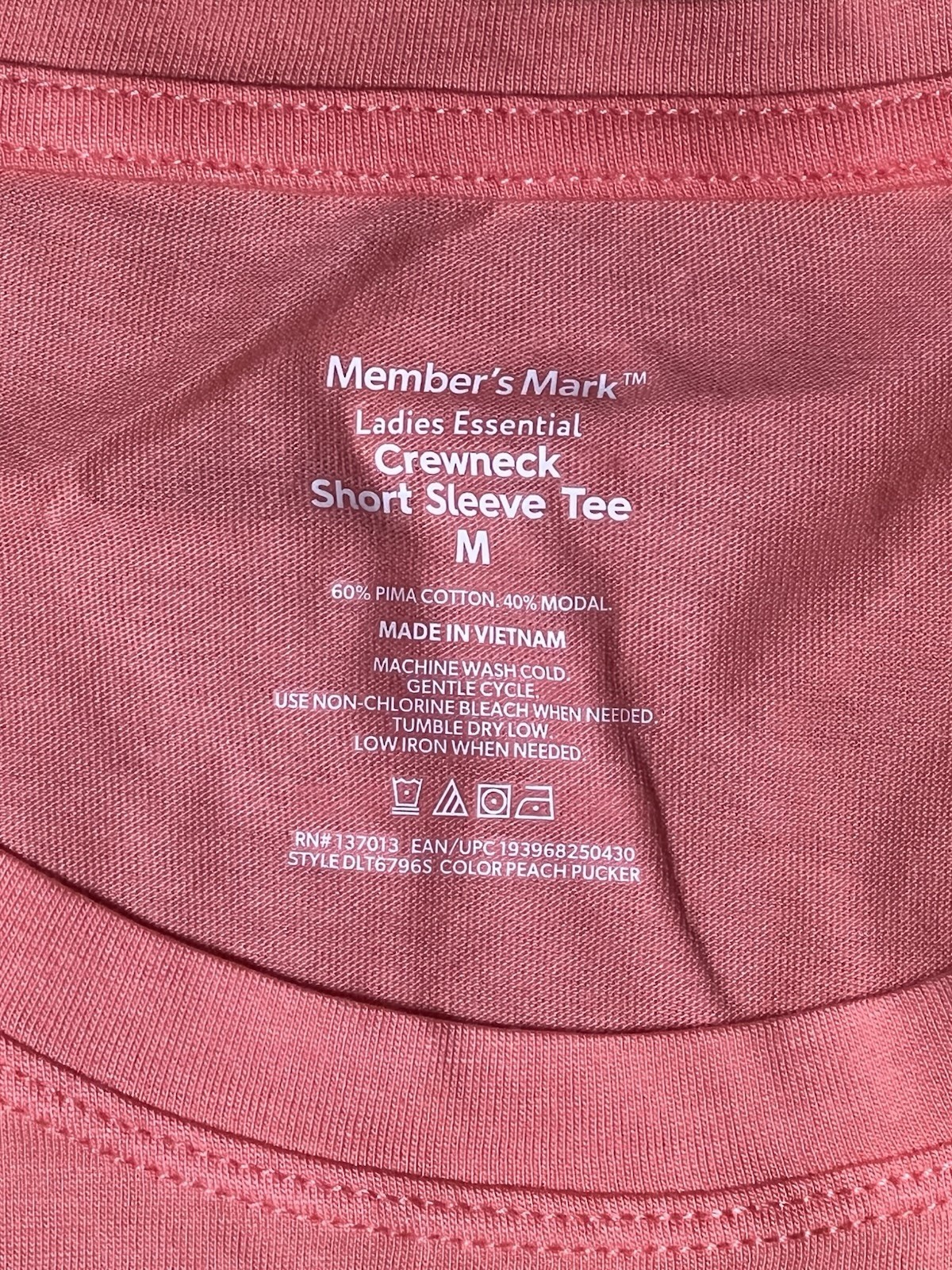The Members Mark Ladies Essential Crewneck SS Tee in Peach Picker is a stylish and comfortable t-shirt designed for women. With a regular fit and a size M, this tee is perfect for everyday wear. The crewneck design and solid color make it versatile, easy to pair with various bottoms. The peach picker adds a subtle pop of color to your wardrobe, making it a great addition for any casual outfit.