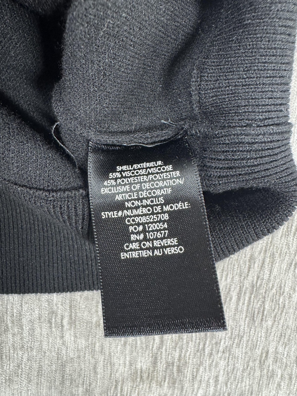 Construction: Ribbed crew neckline, ribbed cuffs and hem; long sleeves; pullover style