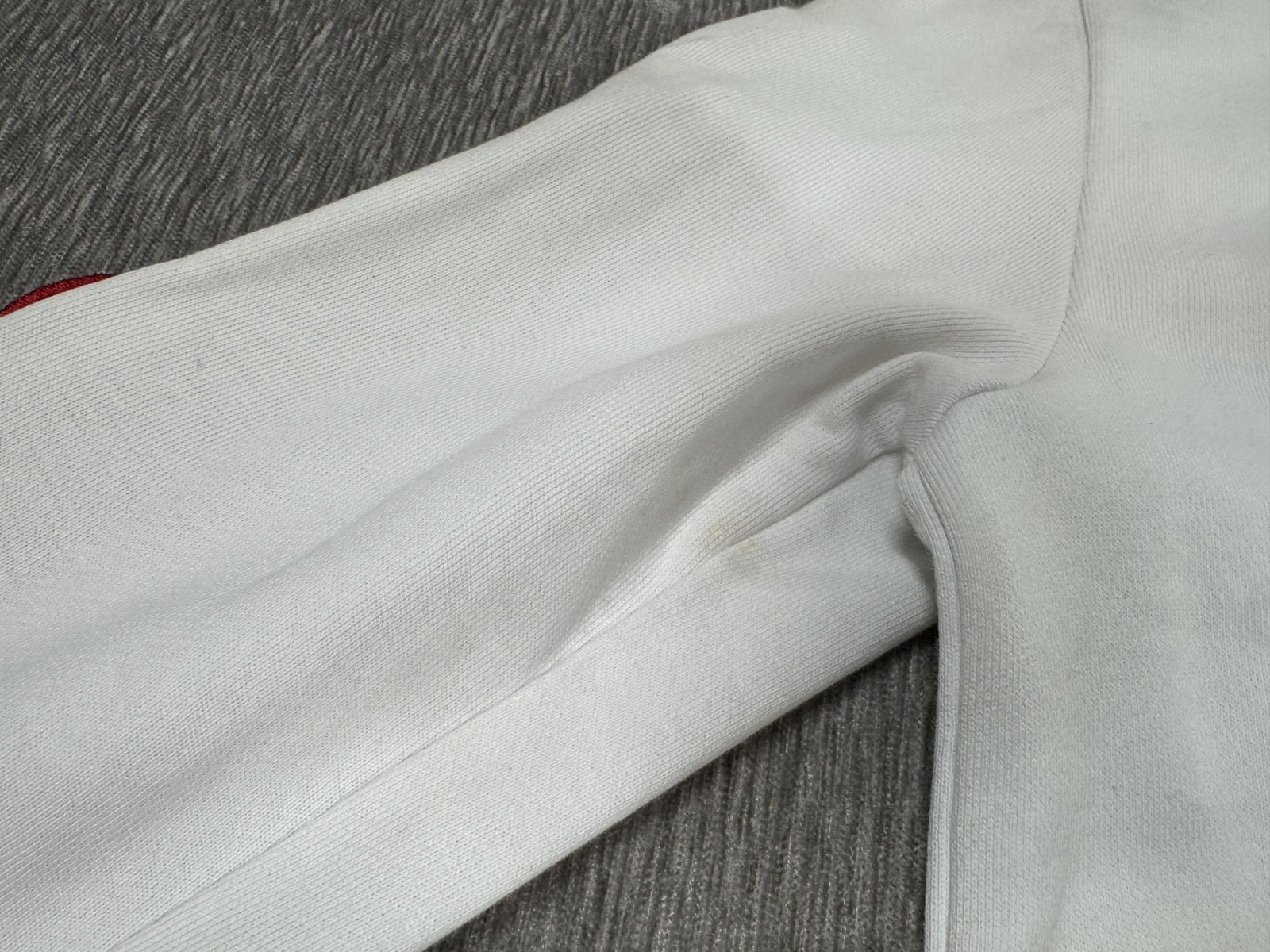 Design details: Crew neck; ribbed cuffs; sleeve cutout detail with two red heart applique patches
