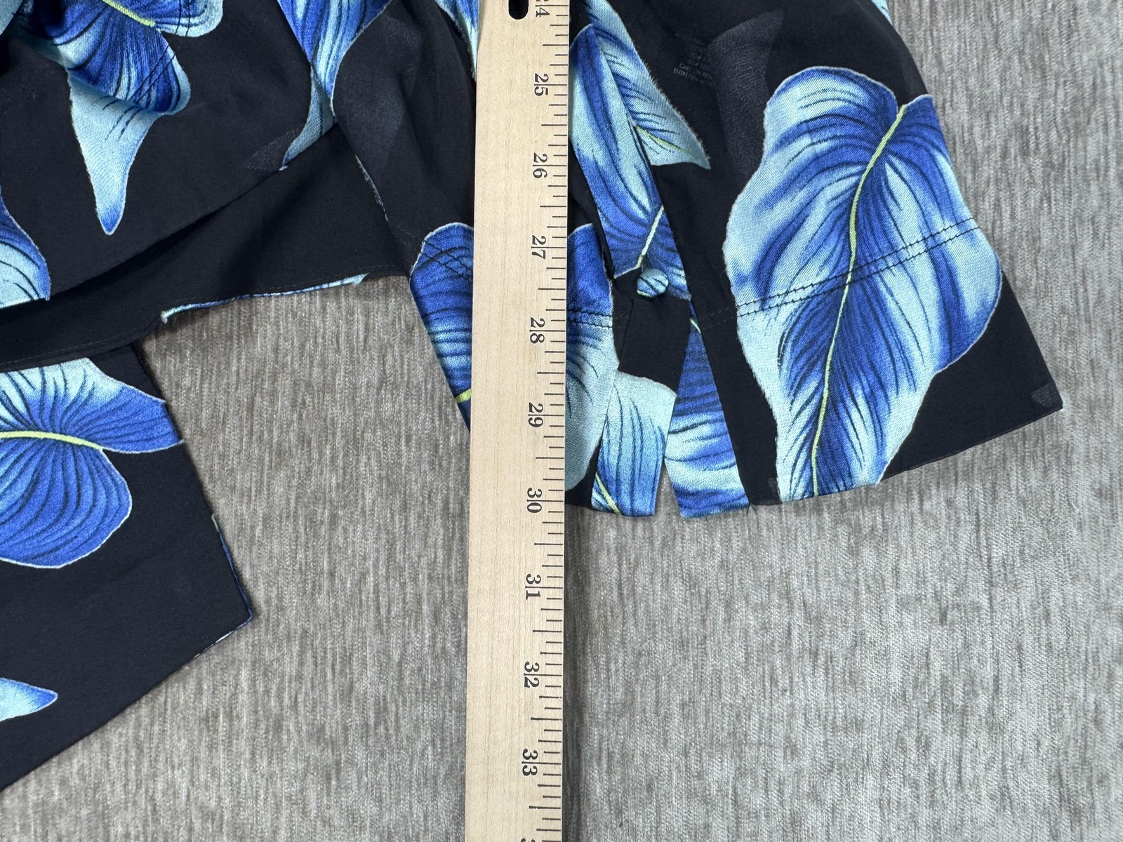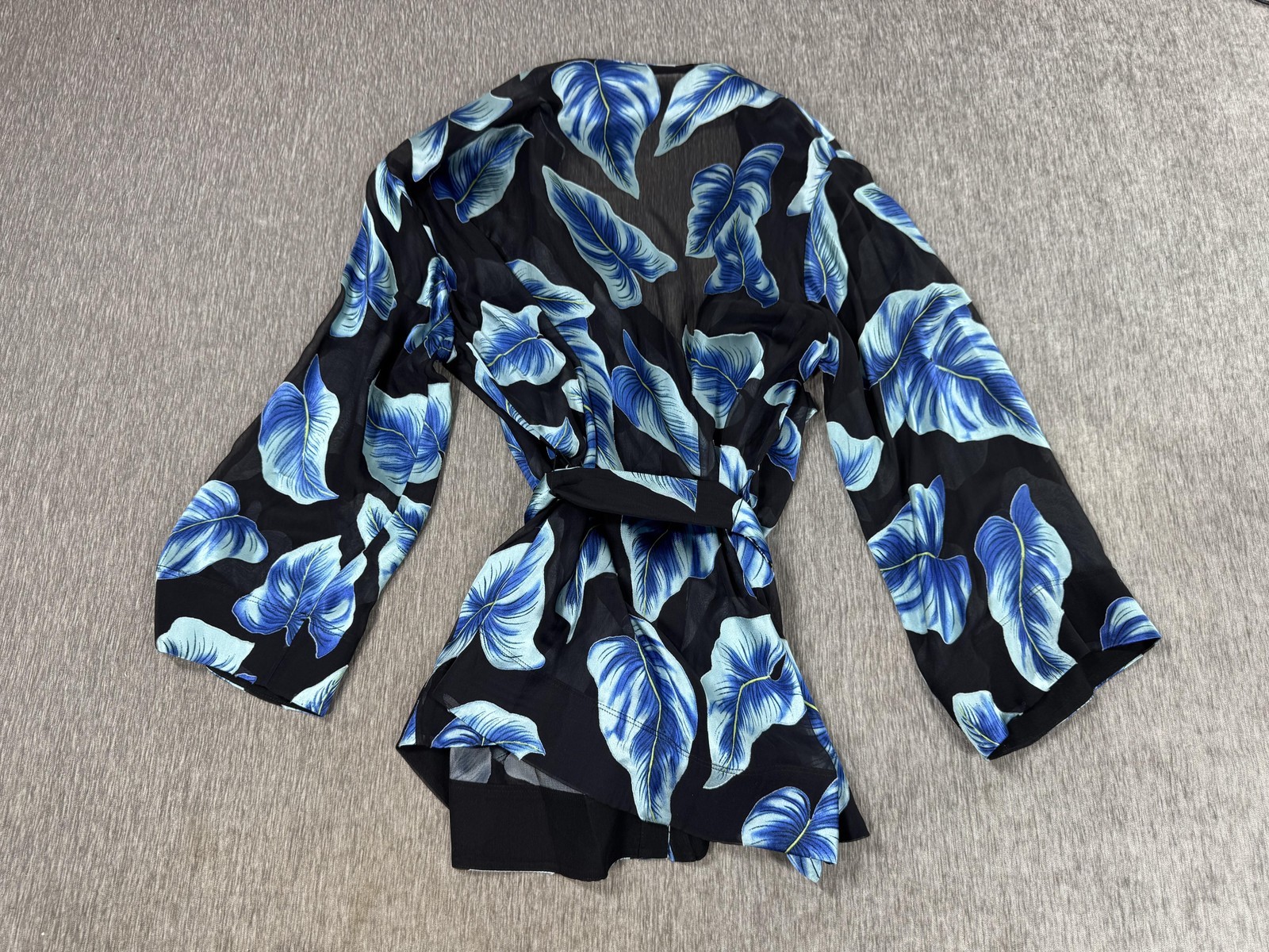 Alice + Olivia Blouse Womens Medium Black Blue Leaf Print Wrap Kimono Tie Waist
