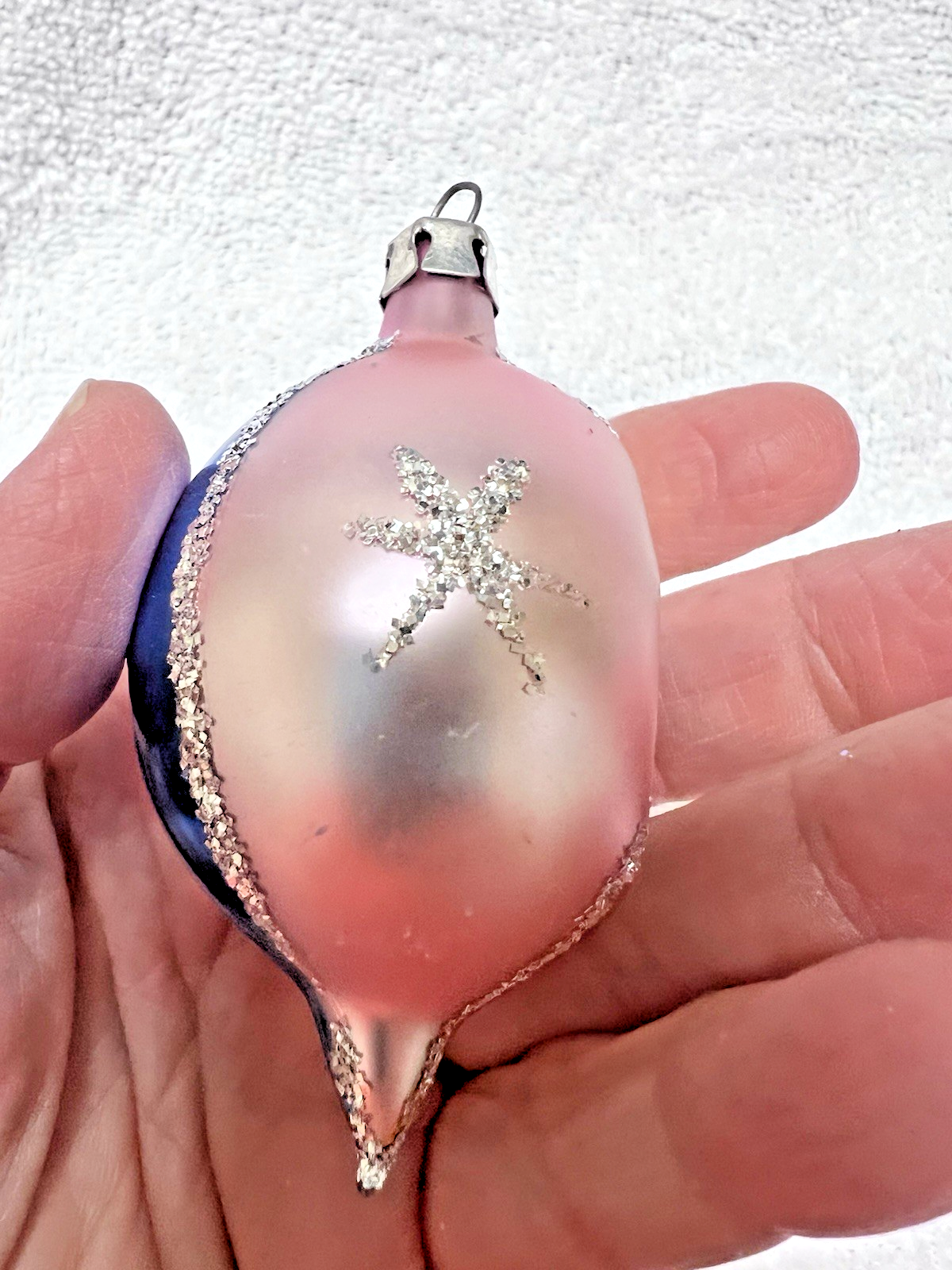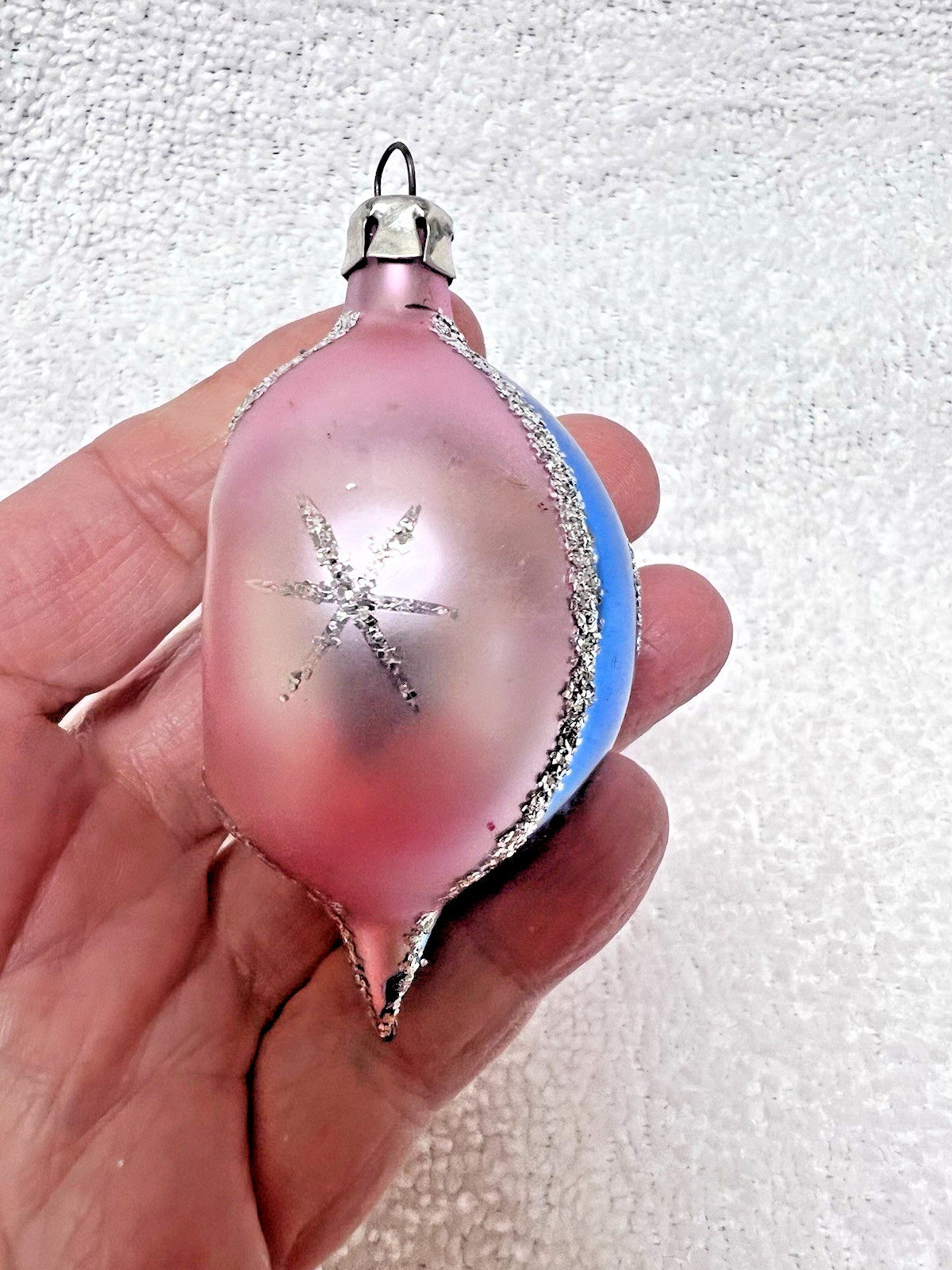 3 Vintage Deep Dent Christmas Balls Ornaments Pink Blue Pointy