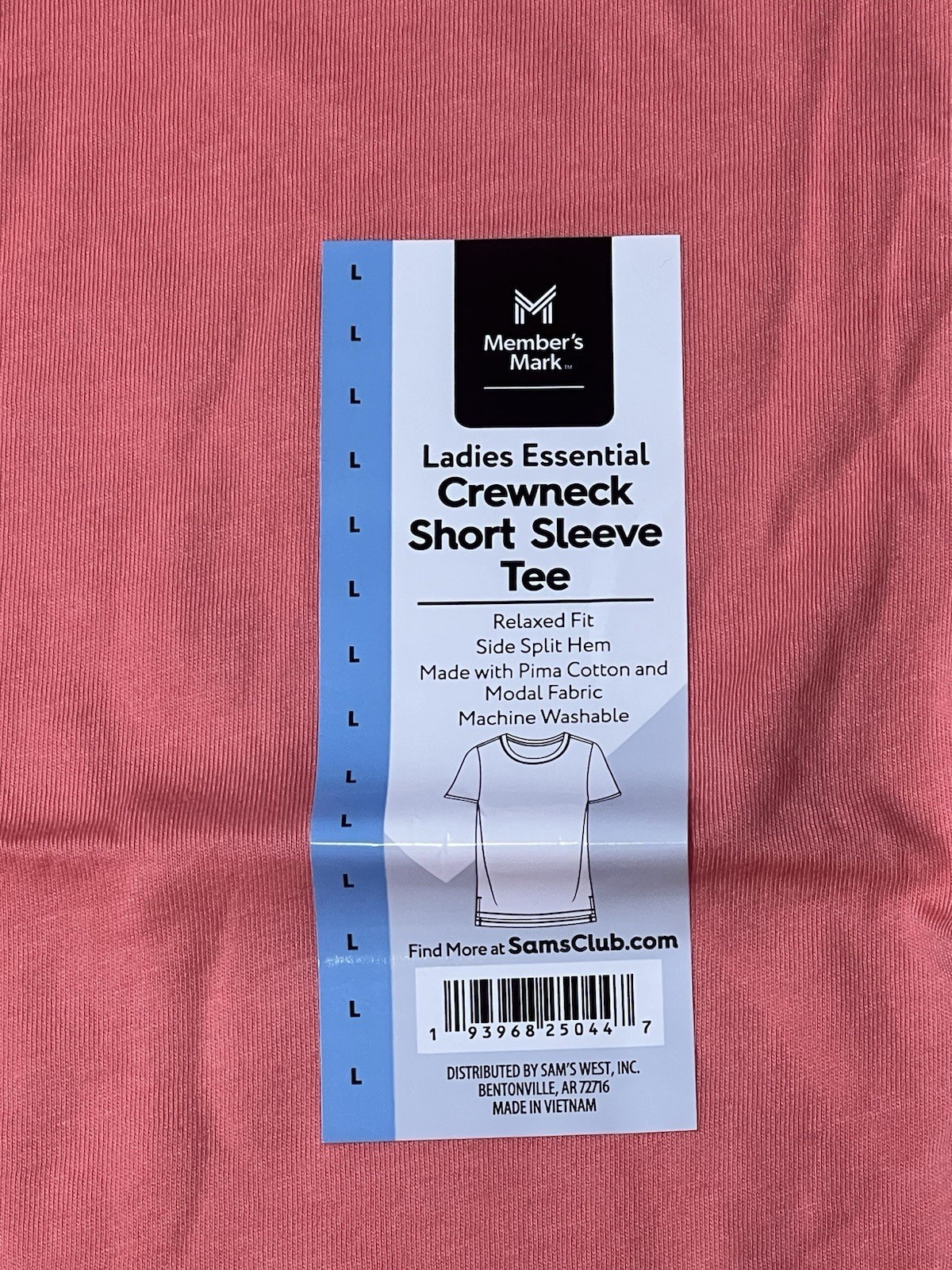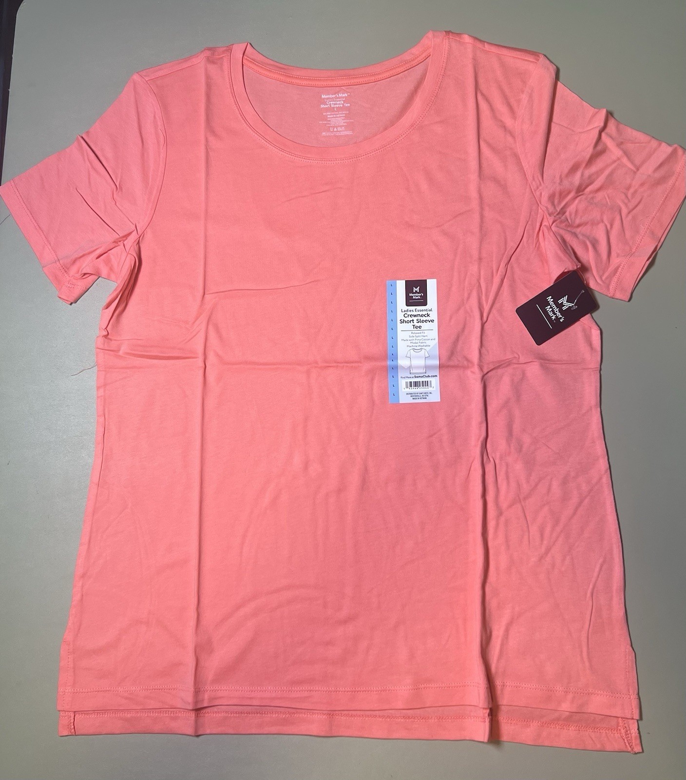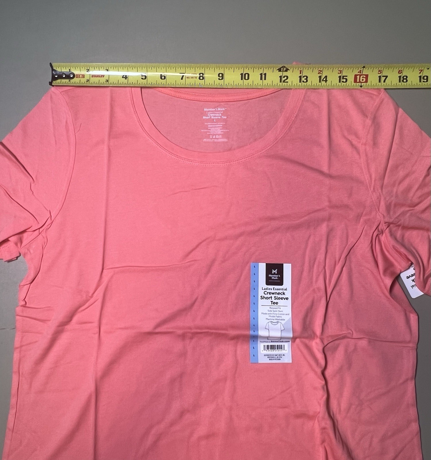 Members Mark Ladies Essential Crewneck SS Tee Size L - Peach Pucker