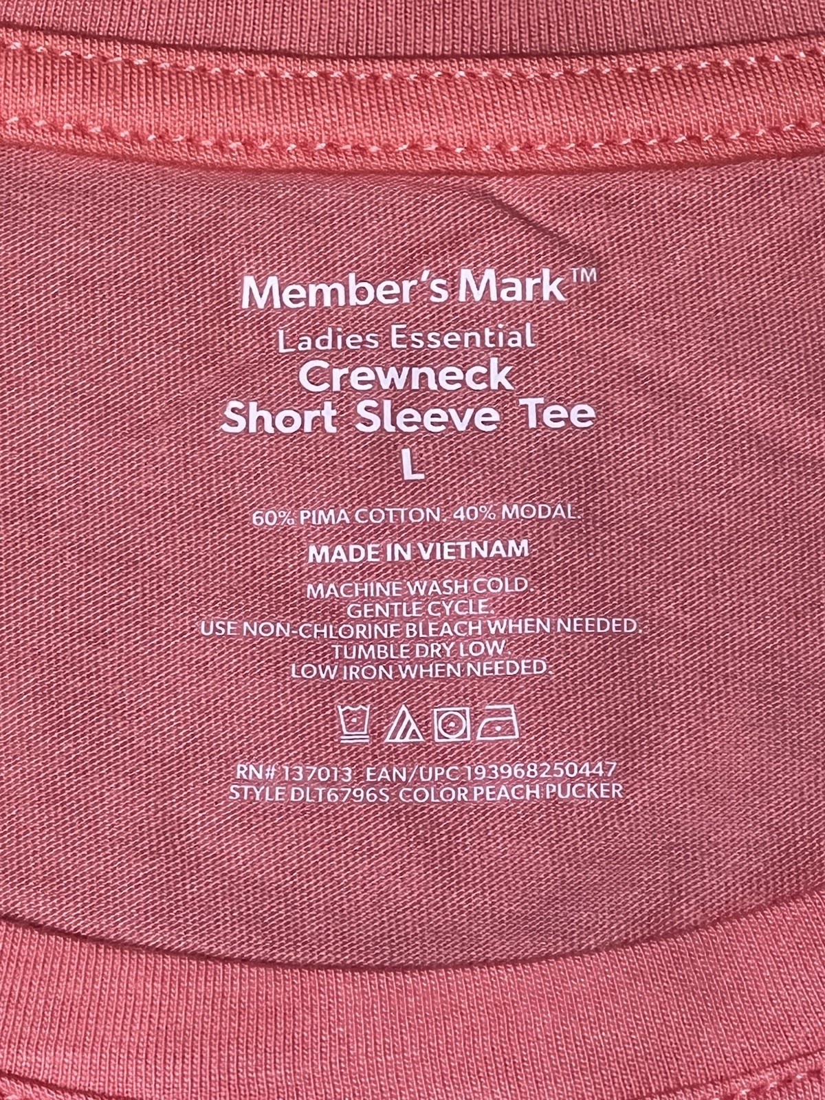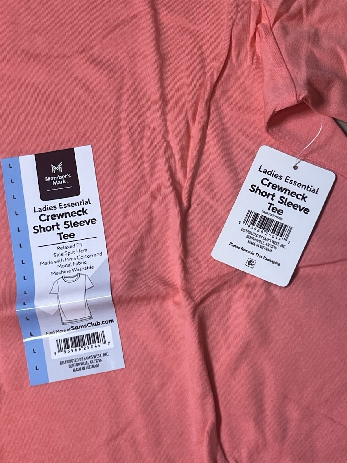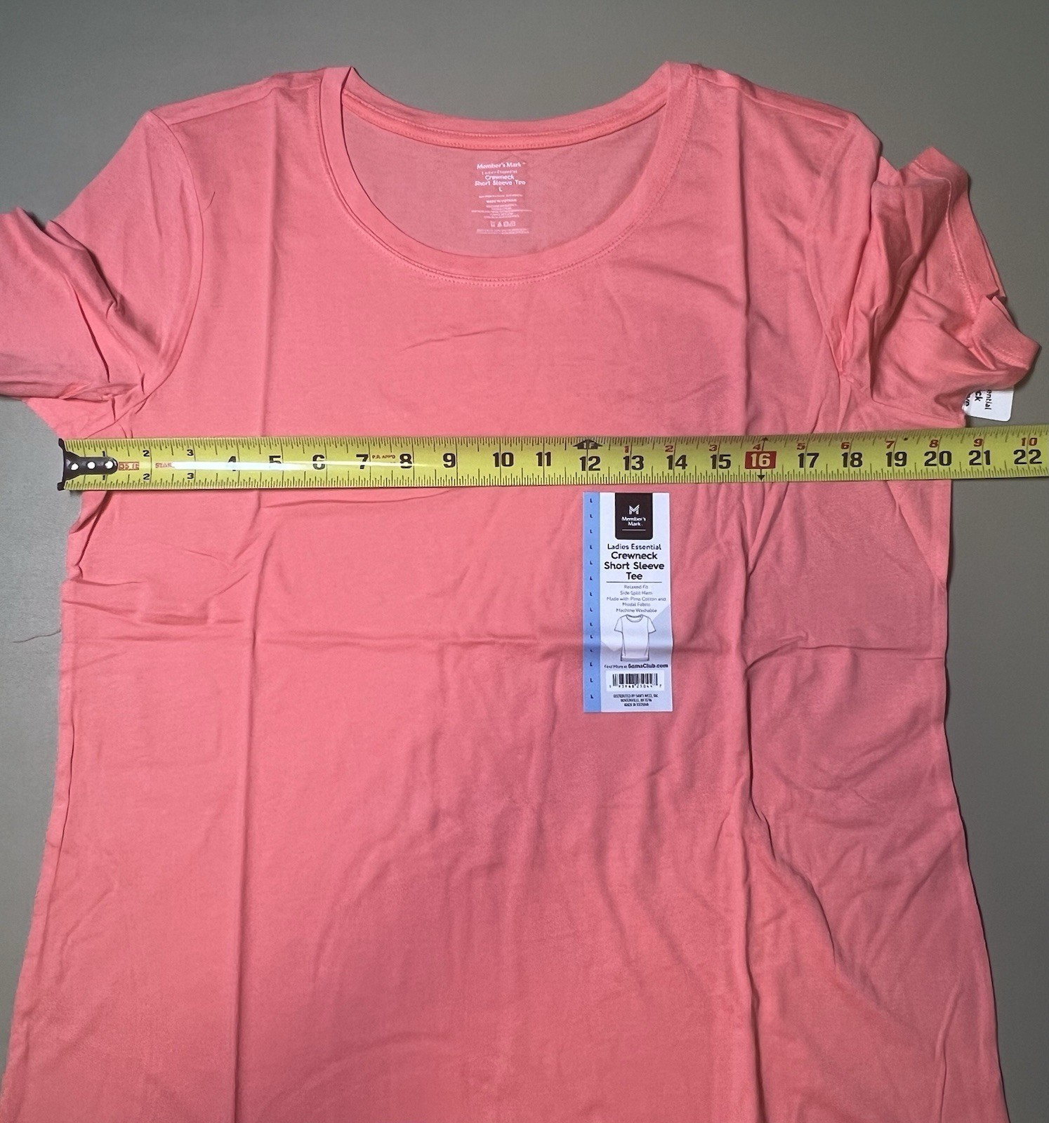 Members Mark Ladies Essential Crewneck SS Tee Size L - Peach Pucker