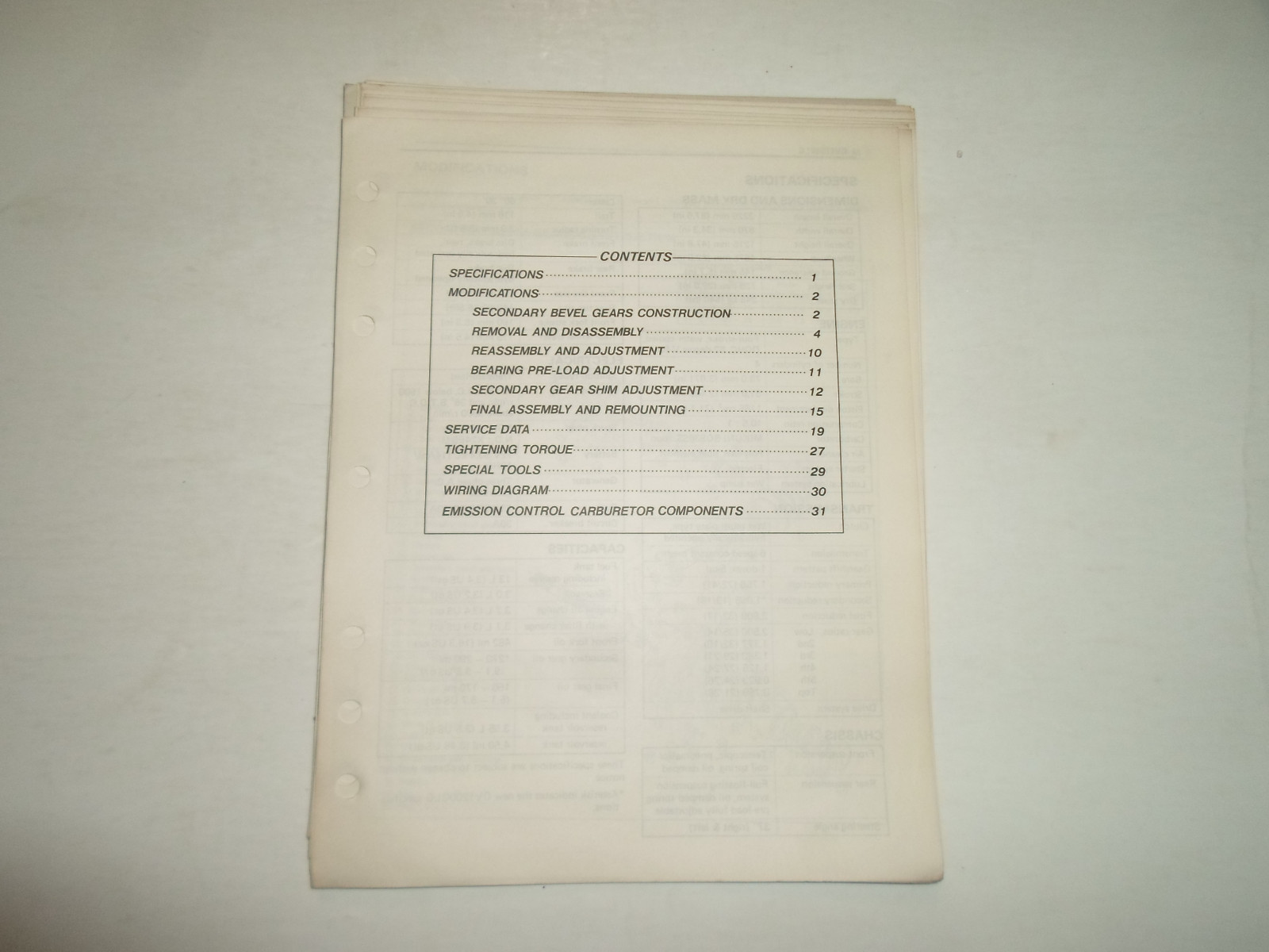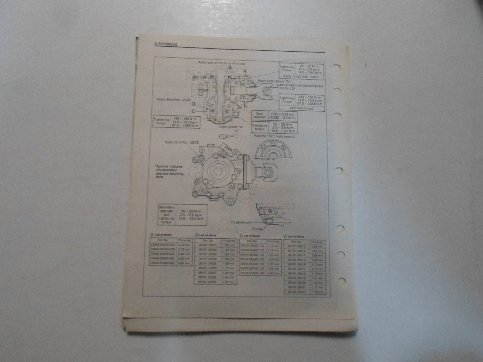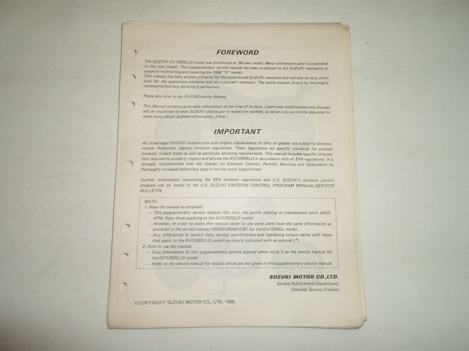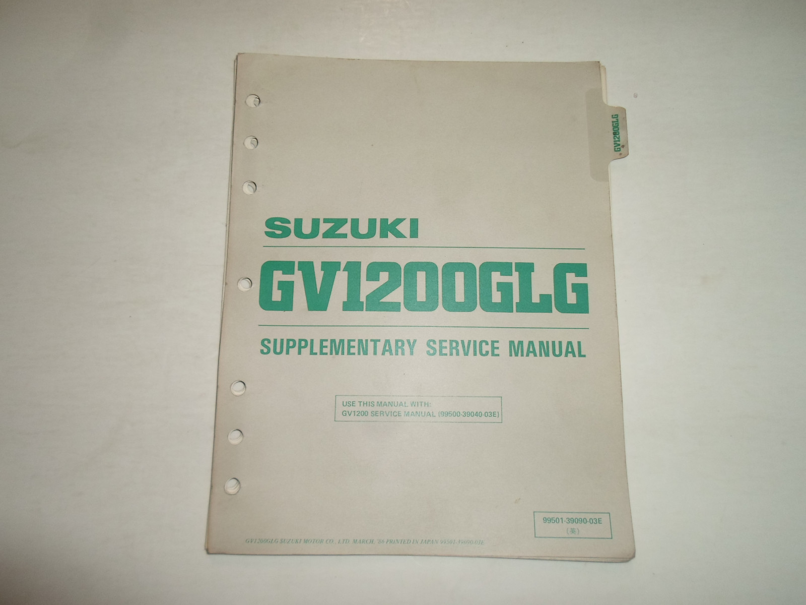 1986 SUZUKI GV1200GLG SUPPLEMENTARY SERVICE MANUAL LOOSE LEAF MINOR STAINS