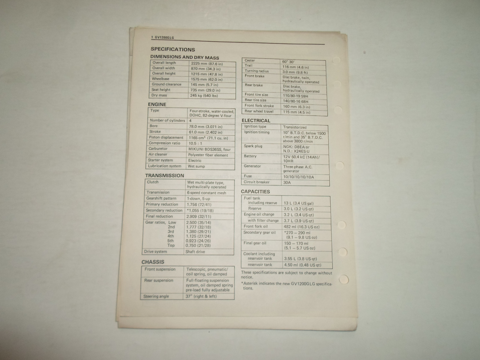 1986 Suzuki GV1200GLG Supplementary Service Manual LOOSE LEAF MINOR STAINS OEM