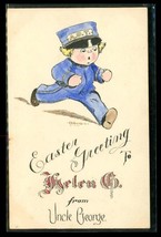 1916 Original Art Postcard drawn by AH Howard. Easter Greetings to Helen G from Uncle George. Features an original illustration of an ADT Telegraph Boy Cartoon. Card stock was printed in Baltimore Maryland.