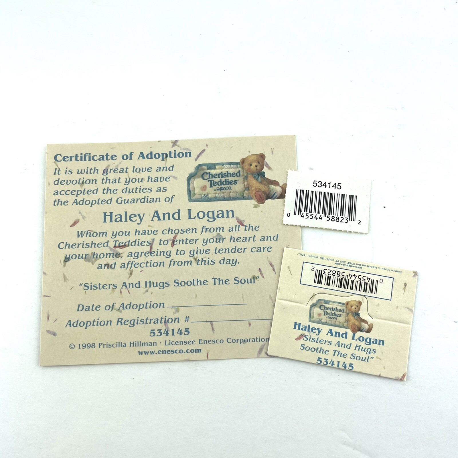 Cherished Teddies Enesco Haley & Logan Bear Figurine Sisters And Hugs Soothe