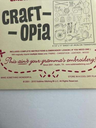 Sublime Stitching Craft-Opia Iron-On Embroidery Patterns Sewing Crafting Theme