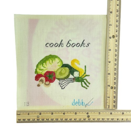 Printed Needlepoint Canvas of Vegetables and Words Cook Books