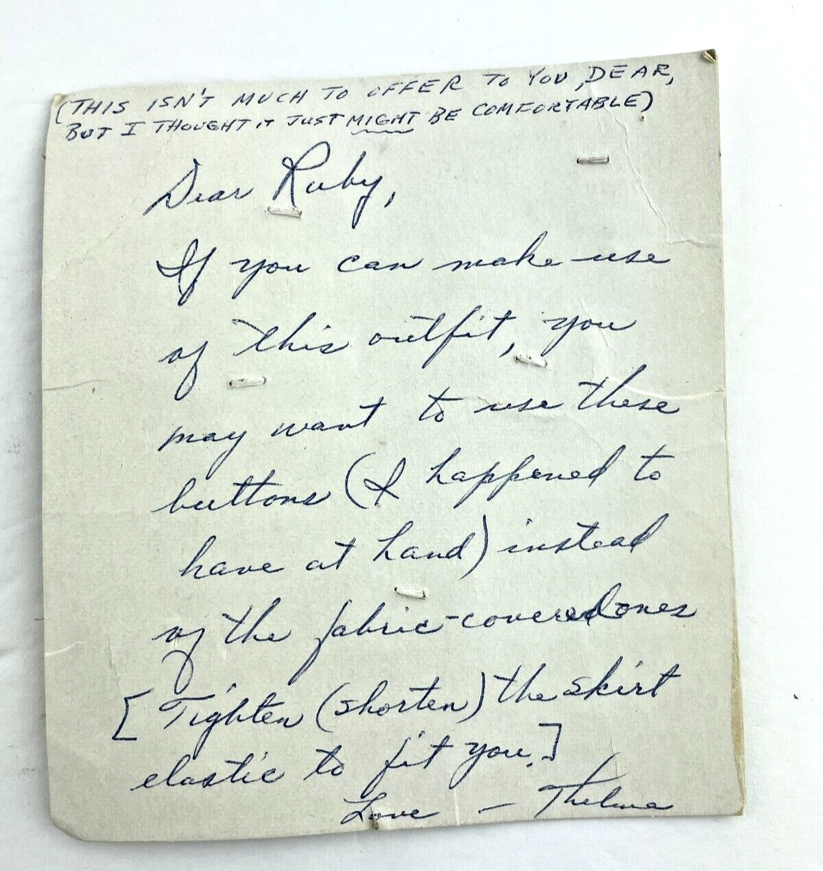 On one card Thelma offered some buttons to a friend to help make her clothing more comfortable.