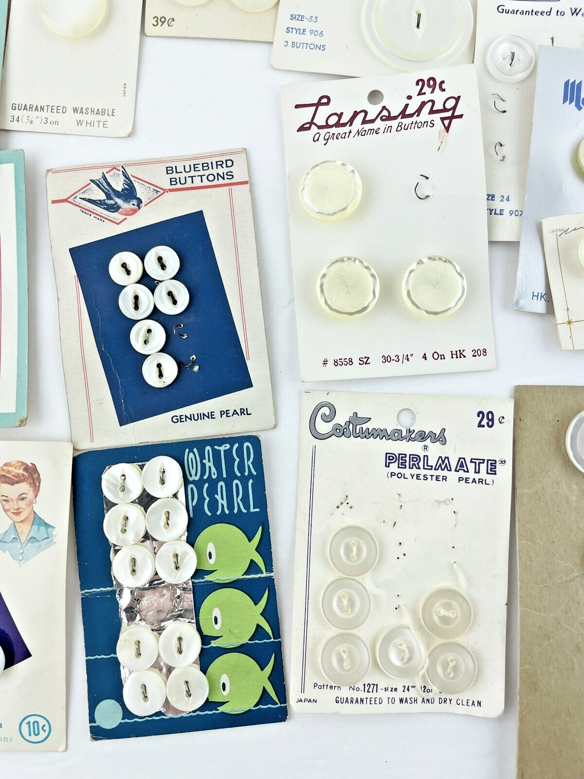 Vintage White Button Lot of 70+ Luckyday Bluebird Risdon Lansing Water Pearl
