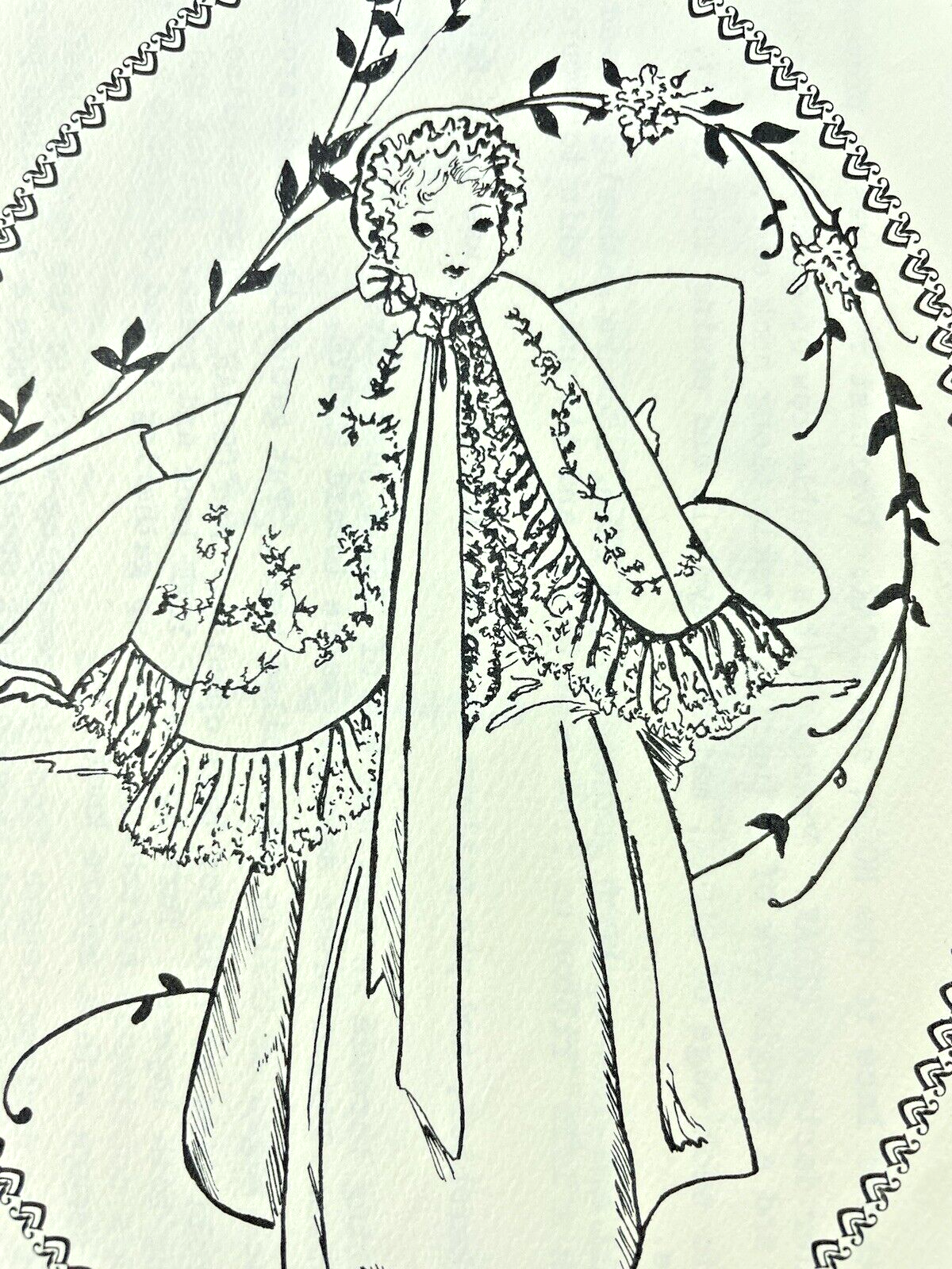 Patterns include cloak, gown, petticoat, cap and kimono.