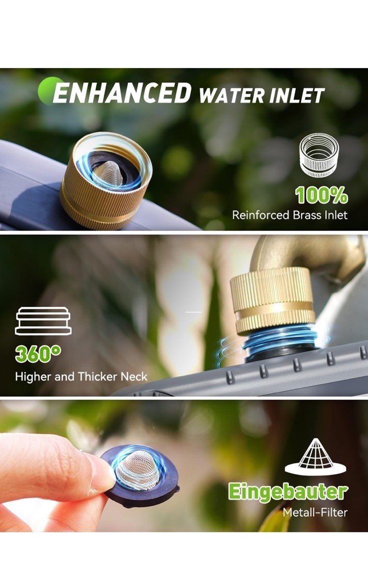 The Rainpoint 3-Zone Water Timer for Garden Hose, model ITV347, is a convenient and efficient watering equipment for your garden. With 3 zones and 3 outlets, you can easily control the water flow to different areas of your garden. The timer is powered by AA batteries, making it convenient to use without the need for constant electricity. The set includes a hose, providing everything you need to properly water your garden. Ideal for homeowners looking to streamline their watering routine and ensure their garden receives the right amount of water.