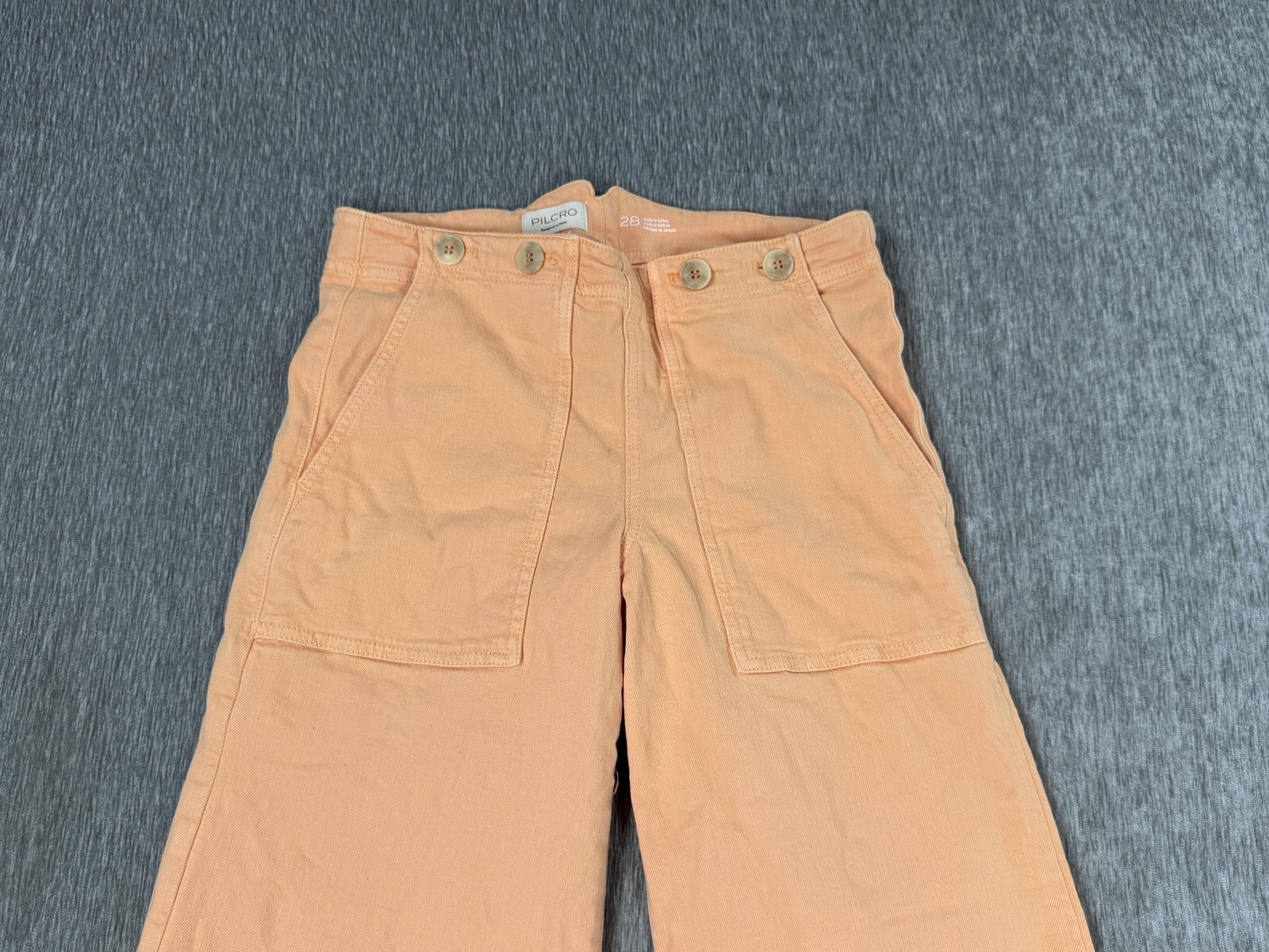 Pilcro Anthropologie Pants Womens 28 Peach High Rise Wide Leg Sailor Twill