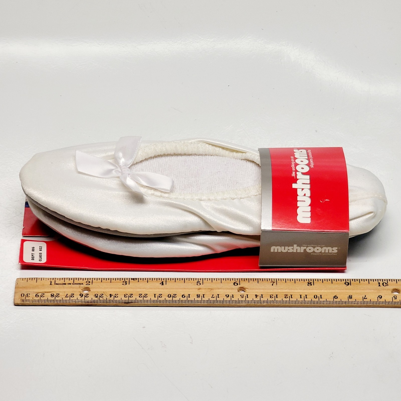 Vintage Mushrooms Slippers House Shoe White Satin Women's 8-9 2000 New Y2K