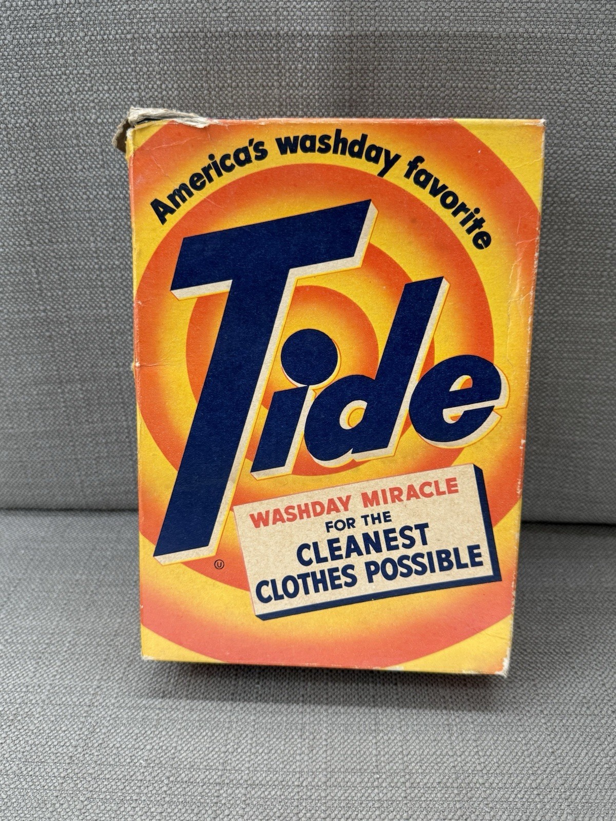 3644. Vintage 1950s Tide Detergent Box 1 lb 3 oz Empty America?s Washday Favorite