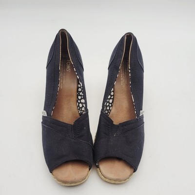 Toms Espadrilles Black Fabric Women Shoes Size 8 W