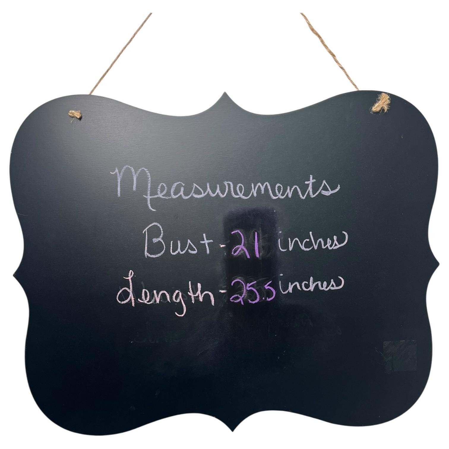 Measurements from photos: Bust 21 inches; Length 25.5 inches