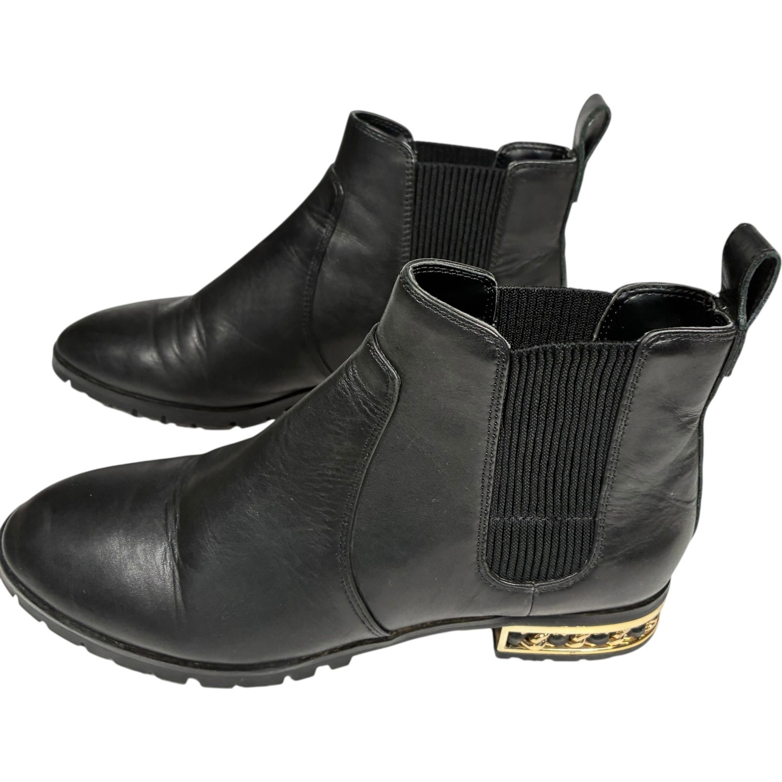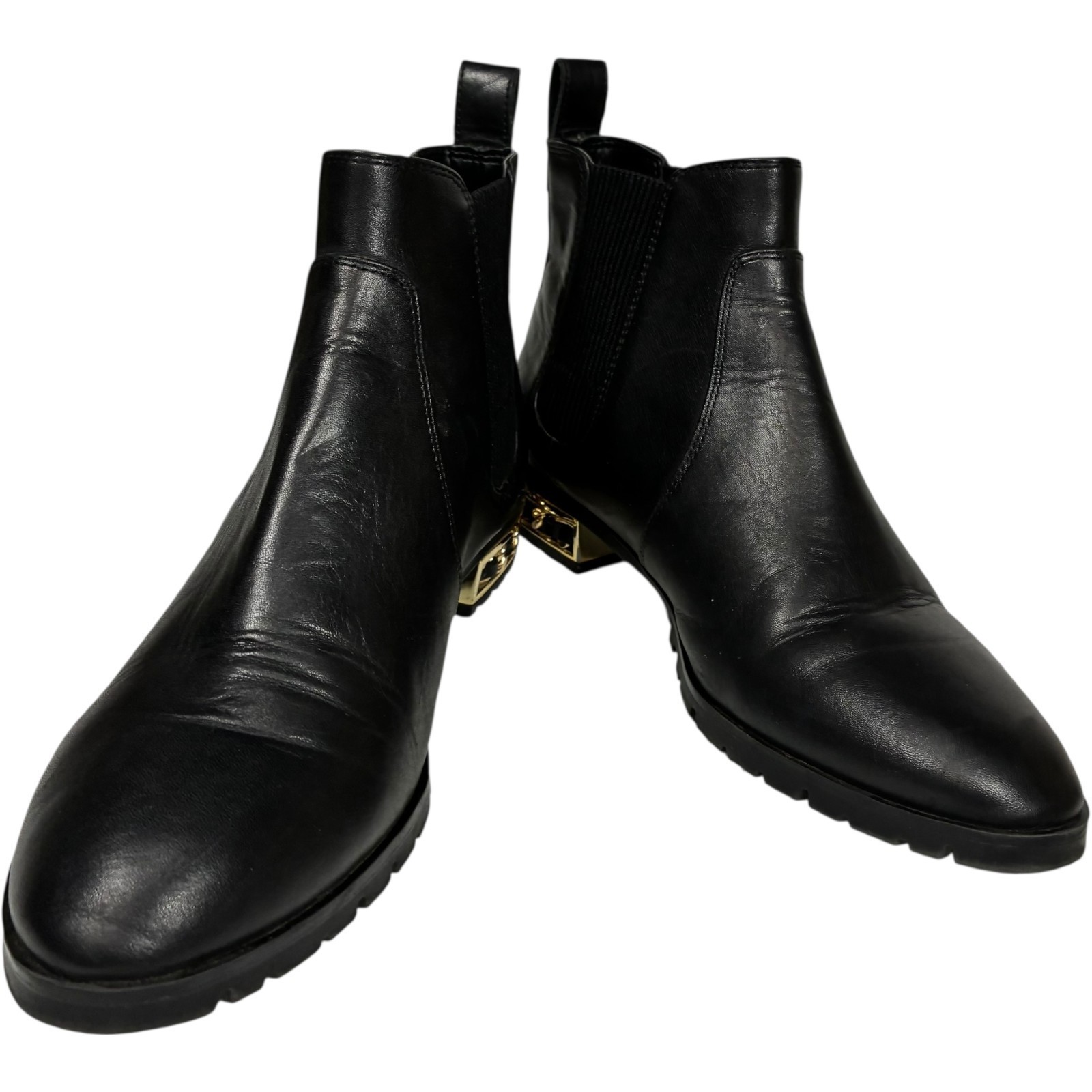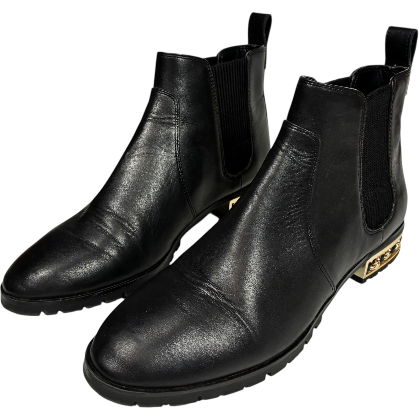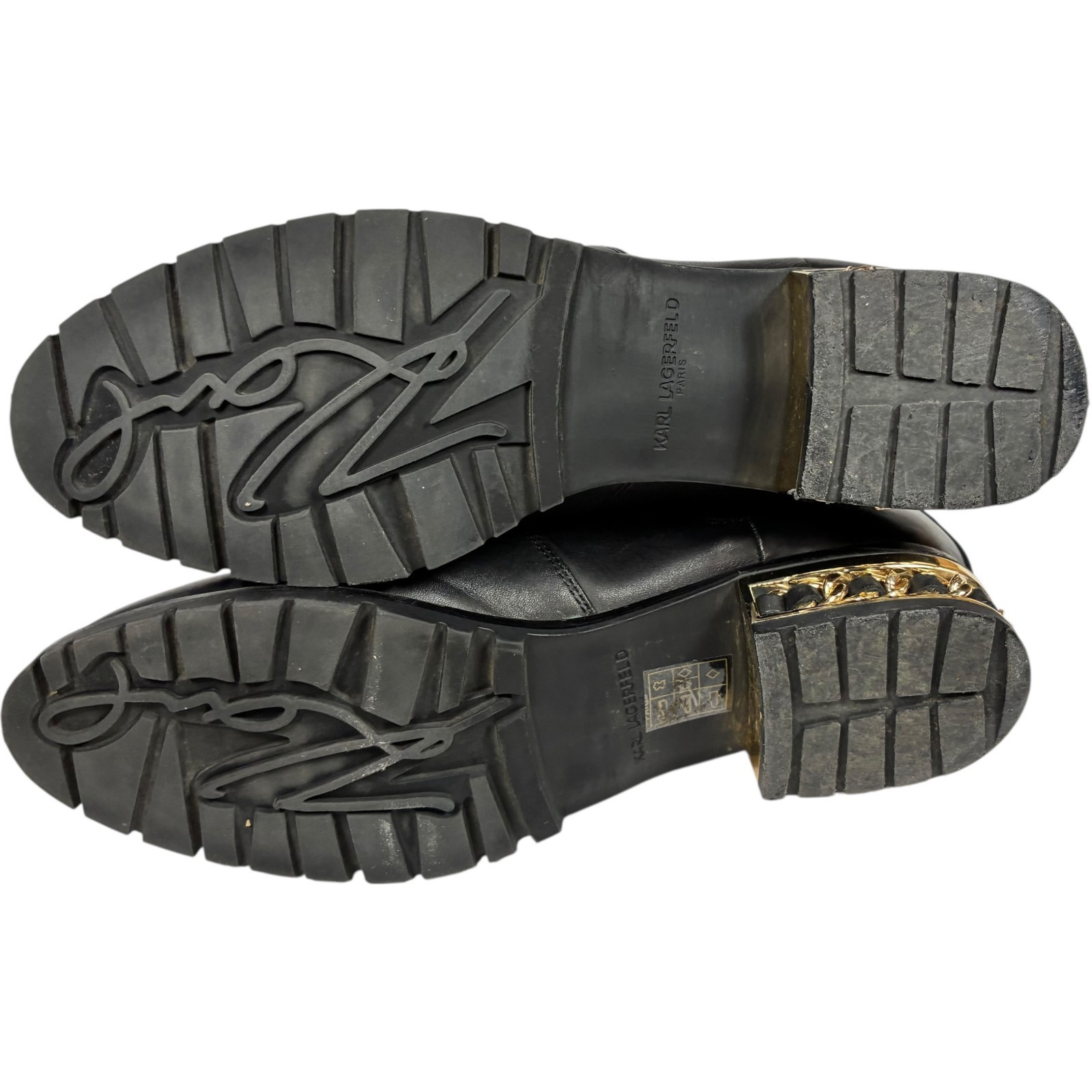 Karl Lagerfeld Paris womens Simone Chain-Trim Black Leather Chelsea Boots size 8