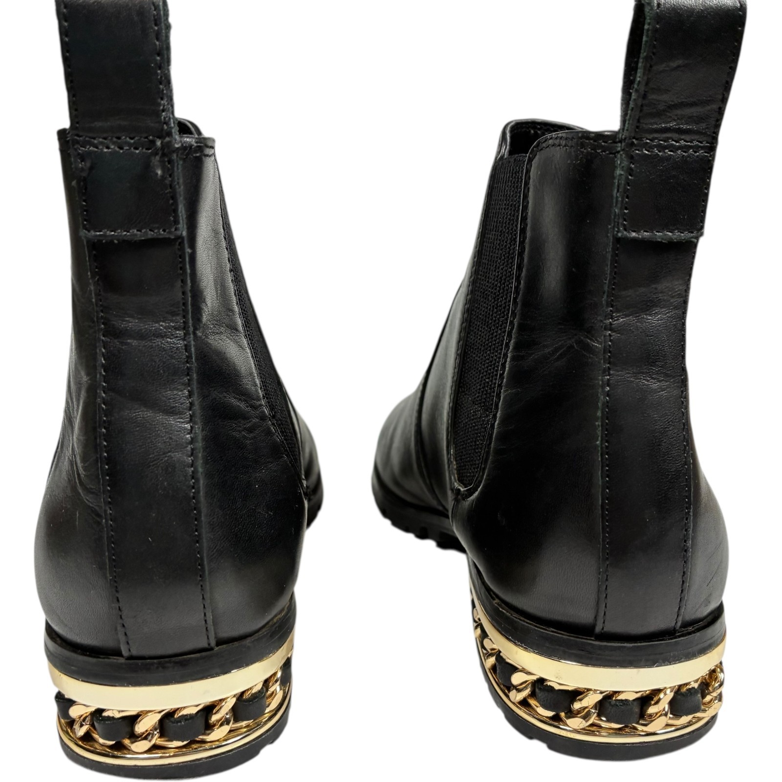 Karl Lagerfeld Paris women's Simone Chain-Trim Black Leather Chelsea Boots size 8M