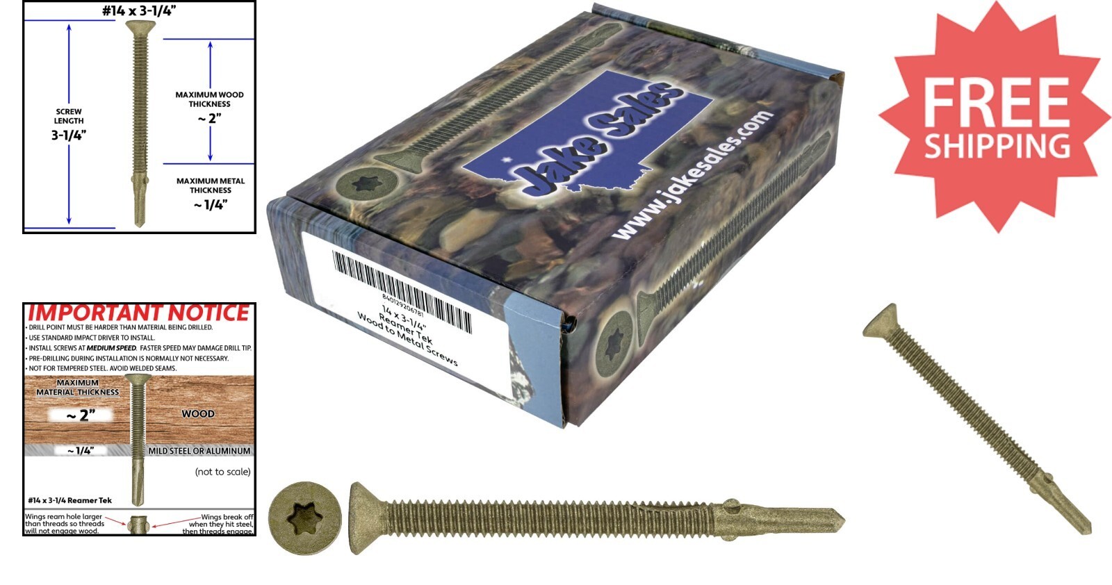 Explore our durable Reamer Tek Screws, designed for fastening wood to mild steel or aluminum with ease. Featuring a maximum wood depth of approximately 1-15/16" and a maximum metal thickness bore of 1/4", these screws are ideal for various construction projects. The screws have a head width of 0.461", total length of 3-1/4", and a shank diameter of 0.24". Please note that the length does not represent the usable thread length or wood thickness. Use a T-30 Torx/Star Bit (not included) for installation. For optimal results, review the reference instructions prior to installation. Not suitable for welded seams or tempered metals. To ensure fast and reliable delivery, we work with multiple fulfillment partners and suppliers. Depending on availability and location, your order may ship from different warehouses or arrive in packaging that varies from item to item. Tracking details are typically provided shortly after shipment, and customer satisfaction remains our top priority.