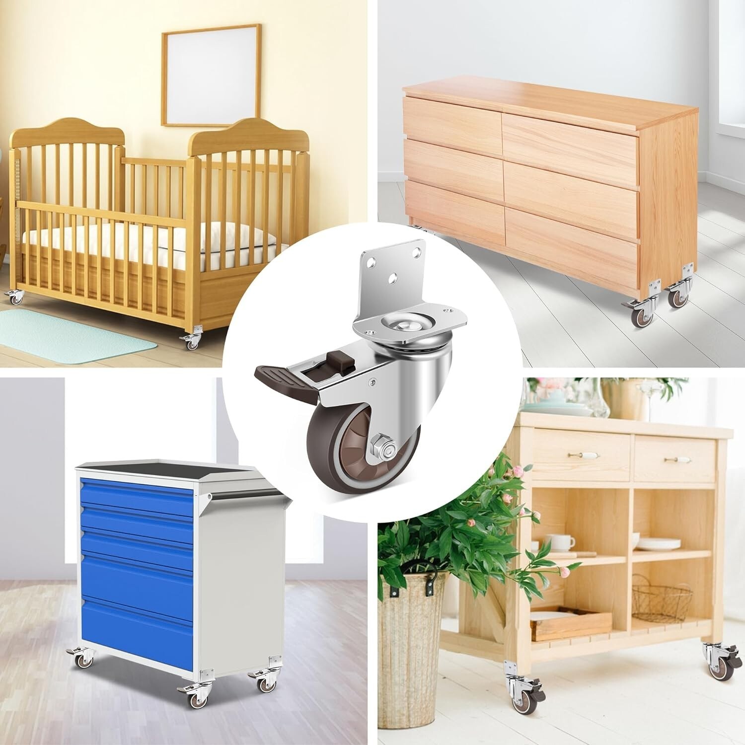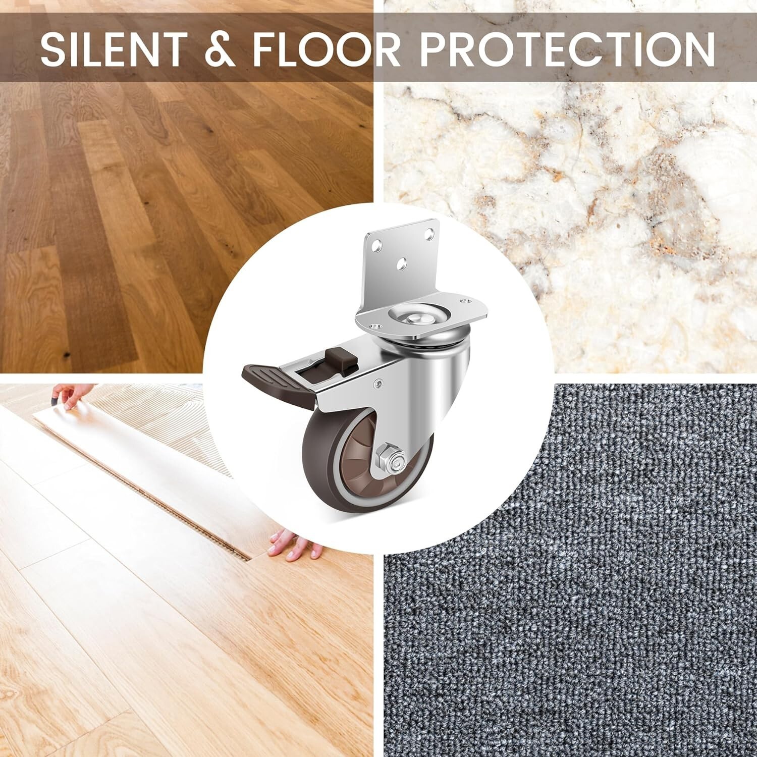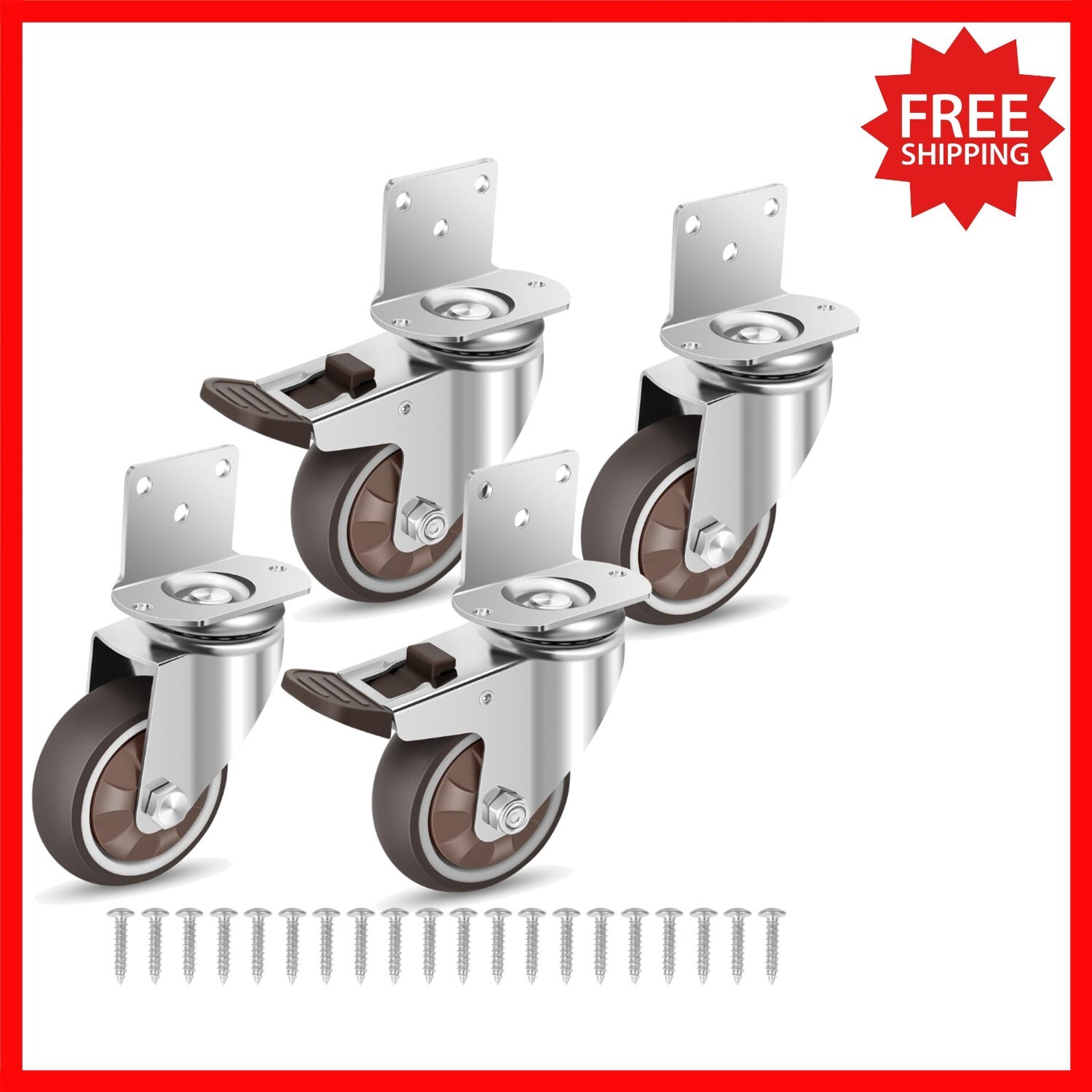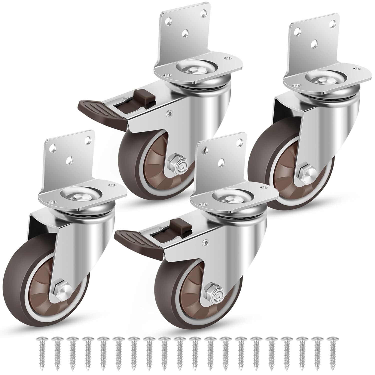 Set of 4 3 Inch Heavy Duty Side Mount Casters with Quiet Operation for Furniture