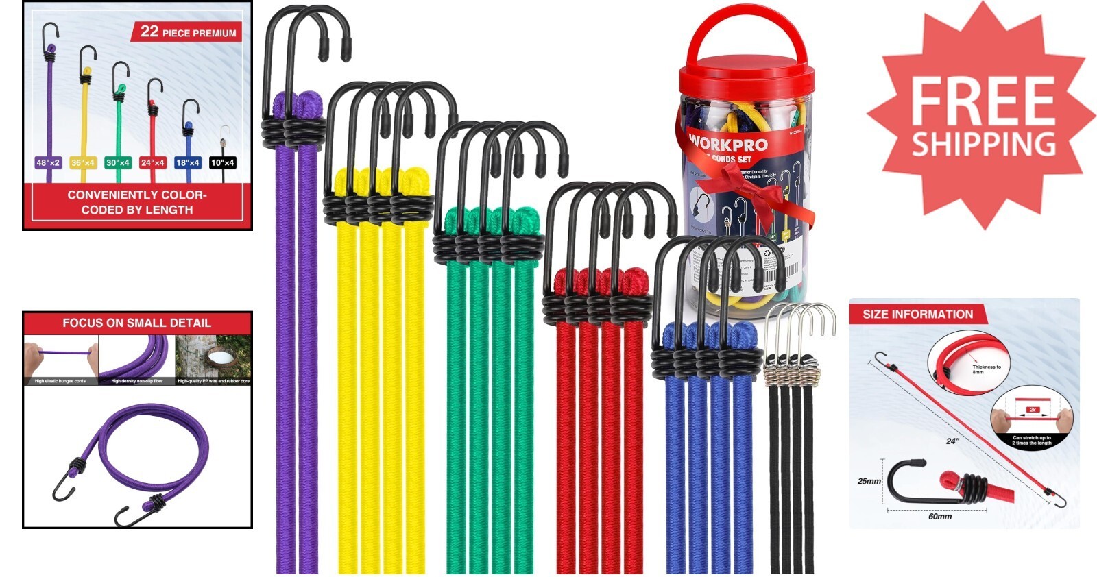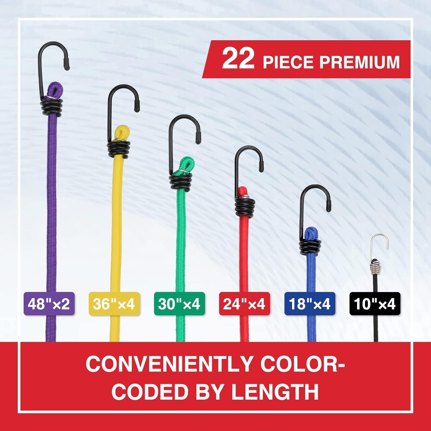 Enhance your securing needs with our 22-piece Bungee Cord Set, featuring color-coded cords by length for quick identification. Including sizes from 10" to 48", each cord is crafted from high-quality PP wire and rubber for exceptional strength and elasticity, suitable for both indoor and outdoor use. Designed with wider and longer cords, these heavy-duty bungee cords offer increased carrying capacity and superior support for bags, bikes, cars, camping gear, gardening tasks, and more. The thickened 8mm threaded cords deliver two times the tensile strength, ensuring durability and reliable performance. Please note: not suitable for rock climbing. To ensure fast and reliable delivery, we work with multiple fulfillment partners and suppliers. Depending on availability and location, your order may ship from different warehouses or arrive in packaging that varies from item to item. Tracking details are typically provided shortly after shipment, and customer satisfaction remains our top priority. Please note that due to carrier policies and regional regulations, certain items may not be eligible for delivery to specific states or territories.
