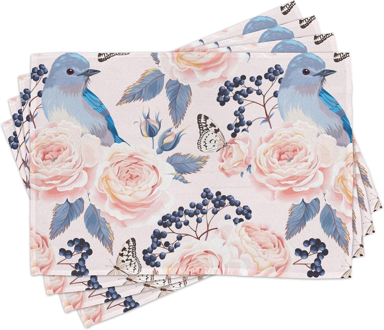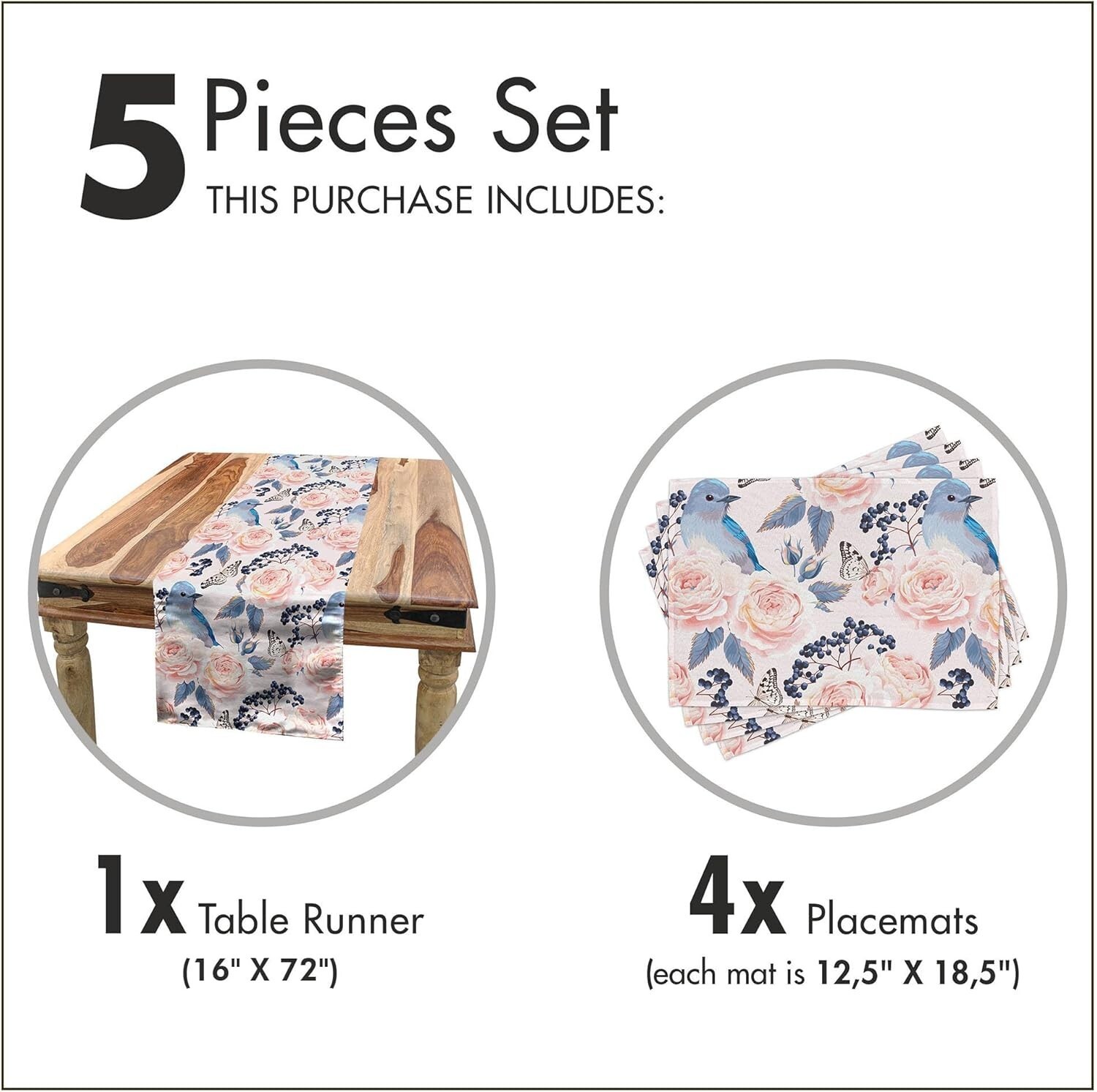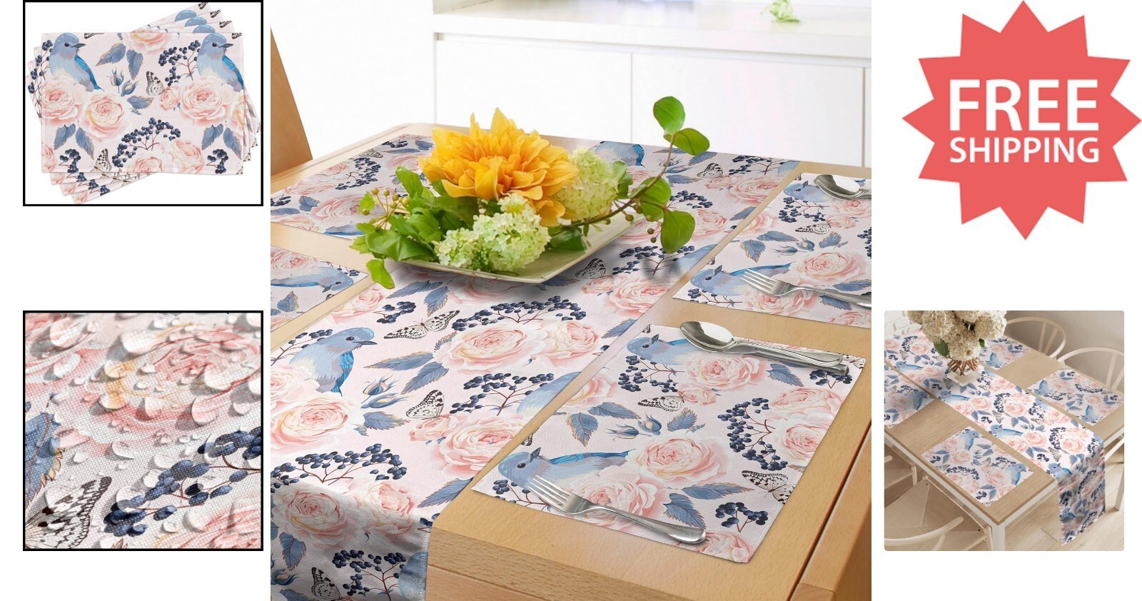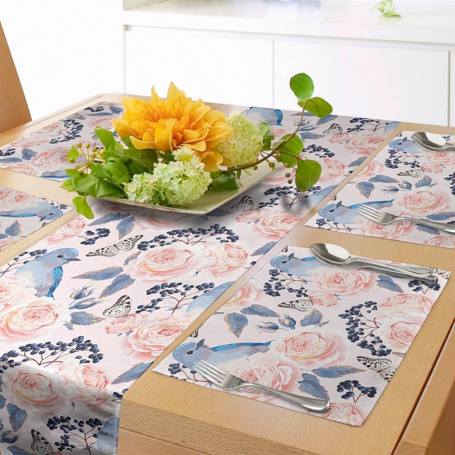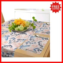 Vintage Floral Table Runner Placemats Set for Elegant Dining ? Blue Pink