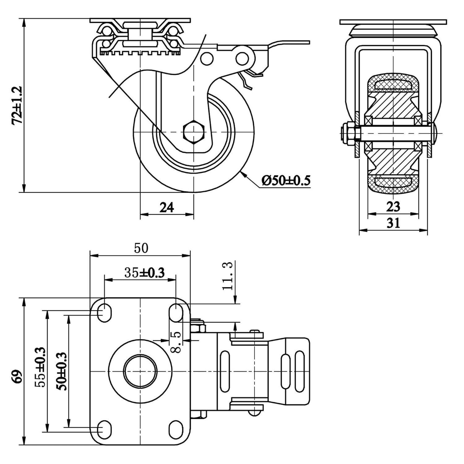 Black PU 2-Inch Caster Wheels - Smooth and and similar items